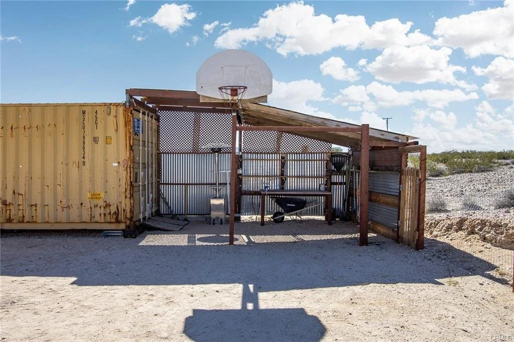 Mojave Sunrise Creative Compound: Serene, remote home adjacent to vast parcels of government-owned land that will never be developed, preserving privacy and peace-of-mind for generations to come. Enclosed breezeway provides additional outdoor shaded living space, protected from the wind. Property also includes a greenhouse, large container and hot tub for a perfectly contained compound with plenty of room for storage; property is also fully-fenced for children or pets. Perhaps the most salient feature is the on-site recording studio, presenting a fantastic opportunity for a live-in musician to record their own tracks at home or produce others. Former garage has been meticulously converted into a studio, complete with control room and vocal isolation booth. Property has city water meter and Southern California Edison electricity for utilities. House purchase described above ends at picture #34. (Sellers also own the 5-acre parcel across the street – starting at picture #35 to #44 – that includes an original block construction recreation cabin, an auxiliary building and area with full RV hookups; the recreational cabin has water, electricity and flushing toilet and shower. This 5-acres add-on – which could be used for rental, guests or extended family – can be purchased separately for an additional $100k cash. Buyer can, of course, finance purchase of home with conventional financing.)