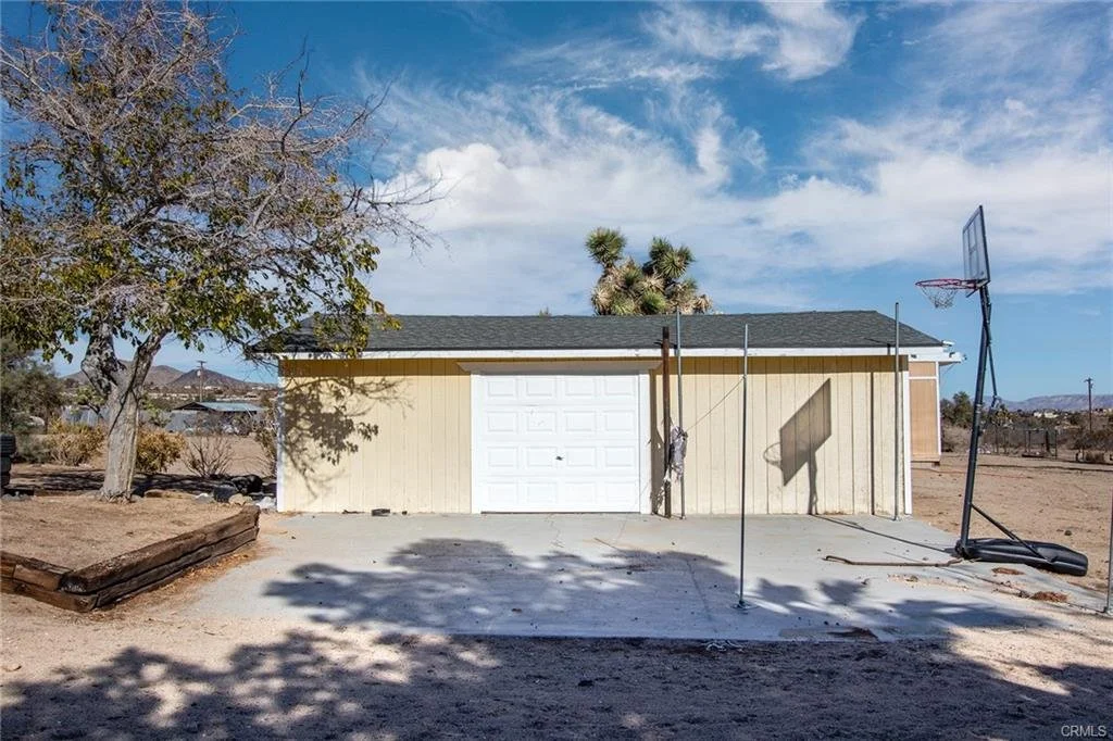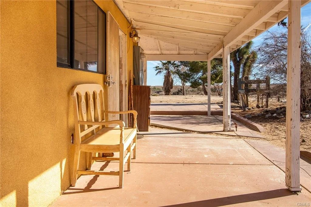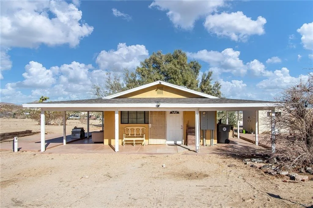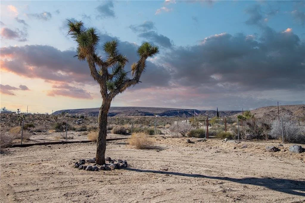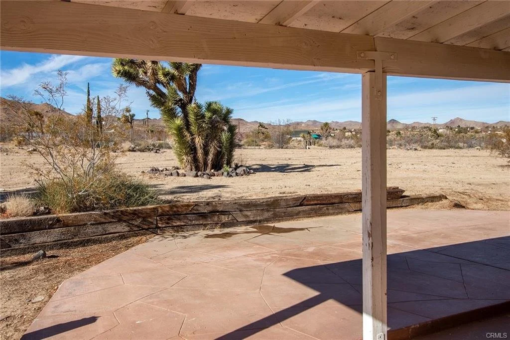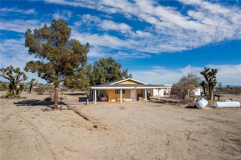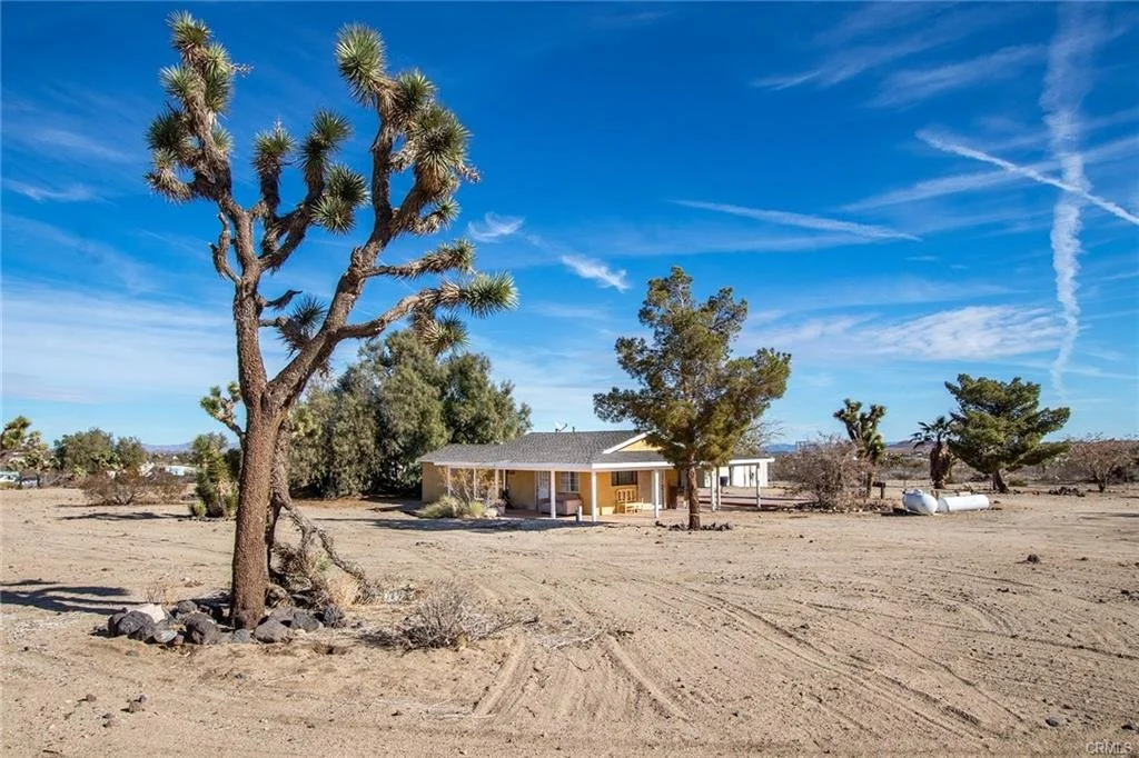 Rock n' Roll! Don't let this baby go. FLAMINGO HEIGHTS COMPOUND: Four separate PERMITTED structures, including a cozy 1 bed/1 bath home with wrap-around porch to stay cool in the shade; a detached laundry house for washer/dryer & storage; a detached two-car garage converted into an insulated, finished room; and 1,800 square feet permitted structure that can be used as office space, an art/music studio, indoor greenhouse, storage and, possibly, living space (buyer to confirm all w S.B. County). Property can be used as a primary residence, long-term or short-term rental. Would make an excellent Base-of-Operations or your business. Purchase includes a working, fully-permitted 400-AMP ELECTRICAL PANEL. Fully-fenced. 2.5-acre corner lot. Solar-powered electric-gate. Walking distance to Sand to Snow National Monument. Excellent wilderness hikes nearby. Panoramic views of the mountains to the south and west. Sweet, unusual location and configuration that can be used for a multitude of purposes.