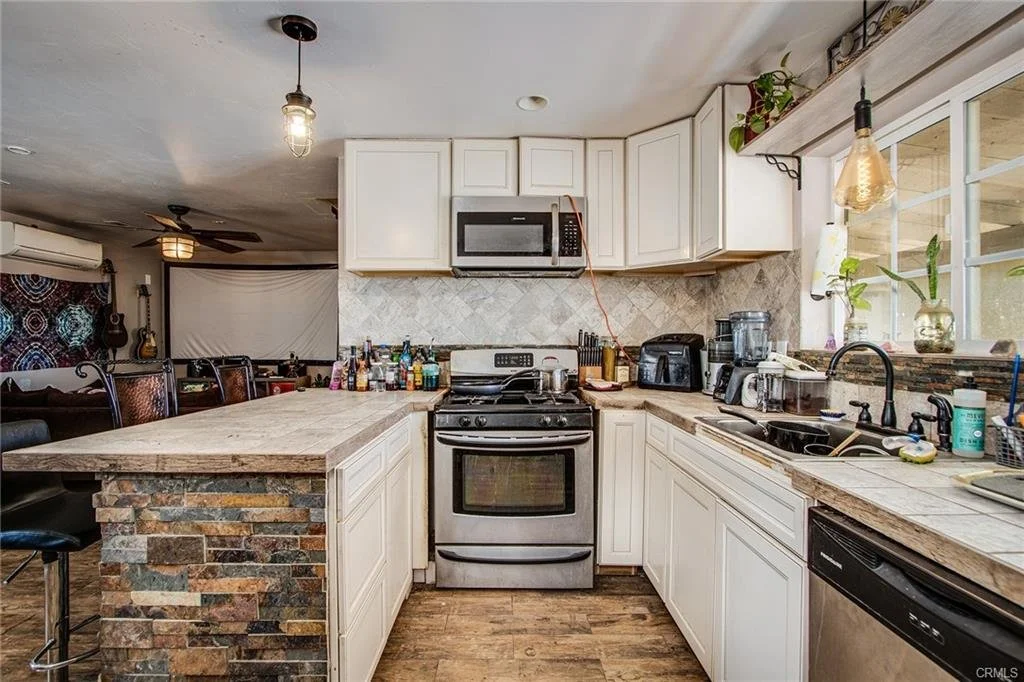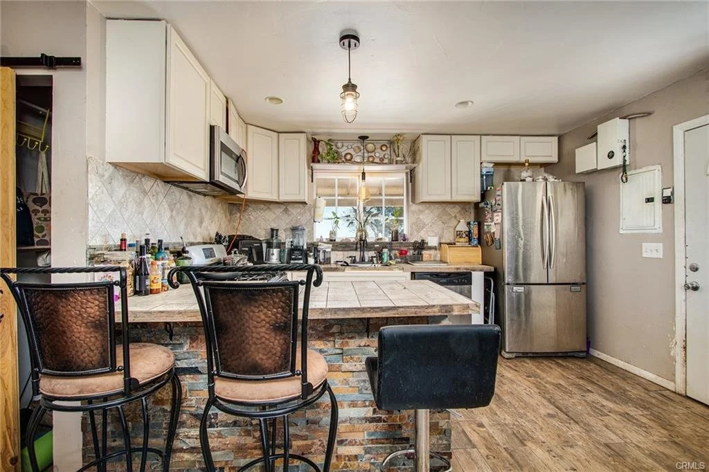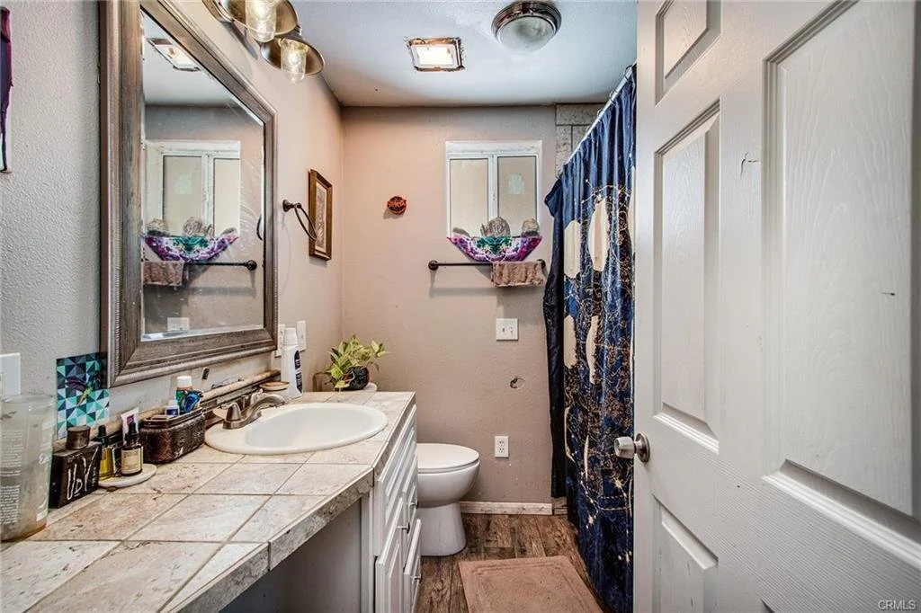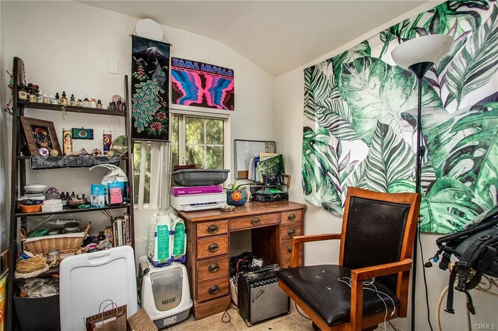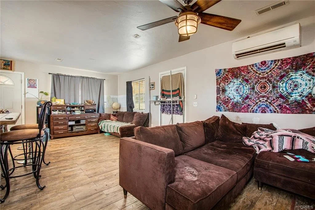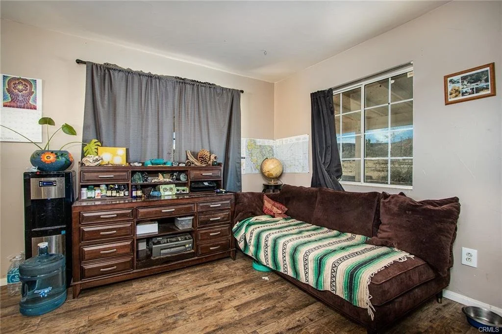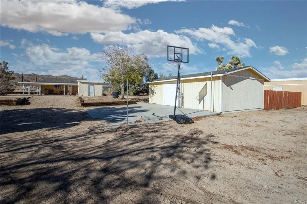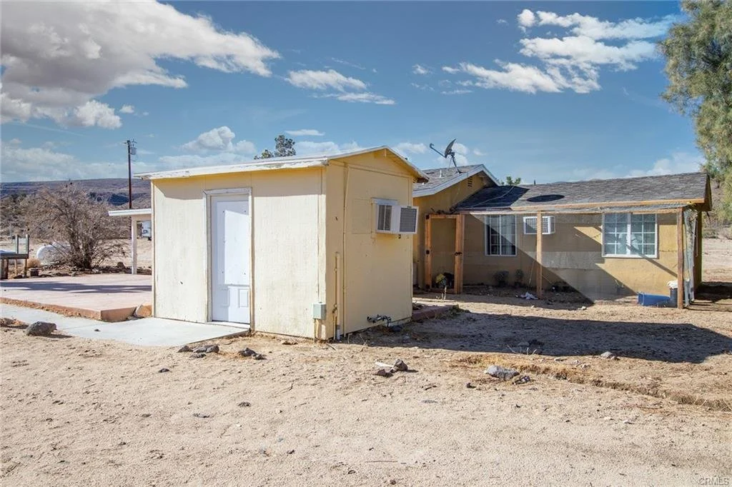 Rock n' Roll! Don't let this baby go. FLAMINGO HEIGHTS COMPOUND: Four separate PERMITTED structures, including a cozy 1 bed/1 bath home with wrap-around porch to stay cool in the shade; a detached laundry house for washer/dryer & storage; a detached two-car garage converted into an insulated, finished room; and 1,800 square feet permitted structure that can be used as office space, an art/music studio, indoor greenhouse, storage and, possibly, living space (buyer to confirm all w S.B. County). Property can be used as a primary residence, long-term or short-term rental. Would make an excellent Base-of-Operations or your business. Purchase includes a working, fully-permitted 400-AMP ELECTRICAL PANEL. Fully-fenced. 2.5-acre corner lot. Solar-powered electric-gate. Walking distance to Sand to Snow National Monument. Excellent wilderness hikes nearby. Panoramic views of the mountains to the south and west. Sweet, unusual location and configuration that can be used for a multitude of purposes.