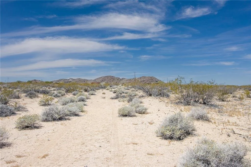 10-ACRES: Rural parcel in North Joshua Tree. Public utilities (water & electric) are nearby. Seller has completed plans to develop home. Elevated location above the Sunfair dry lakebed and near the Joshua Tree Music Festival site. Wilderness hiking from parcel. Property has already been assigned an official street address, the first step in the permitting process for building. Please note that green lines demarcating boundaries in pictures are approximate. APN: 0632-081-03