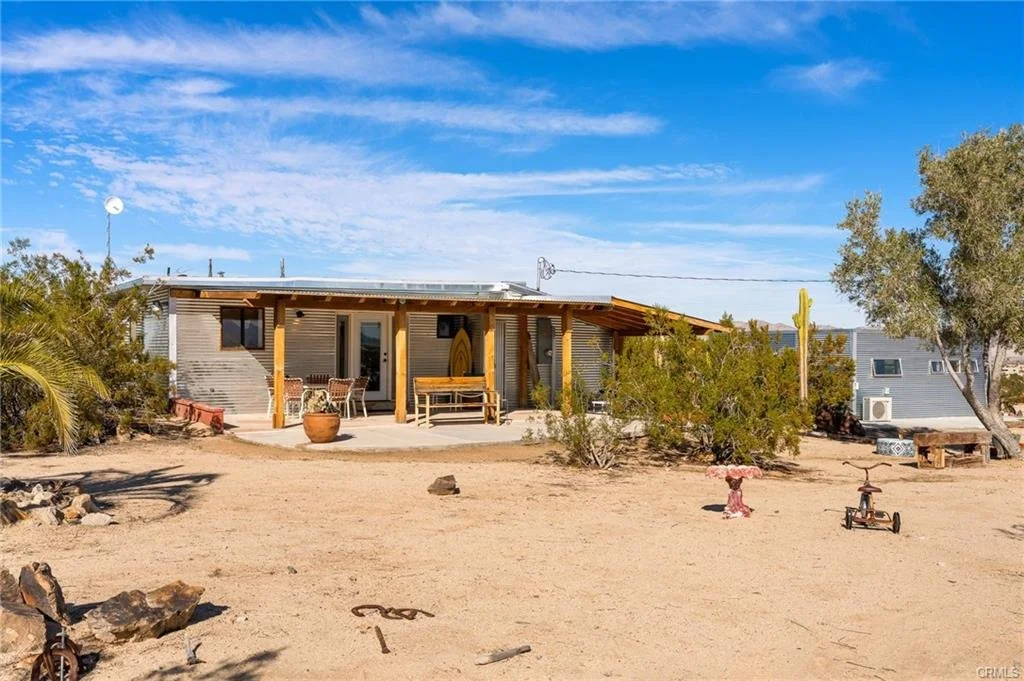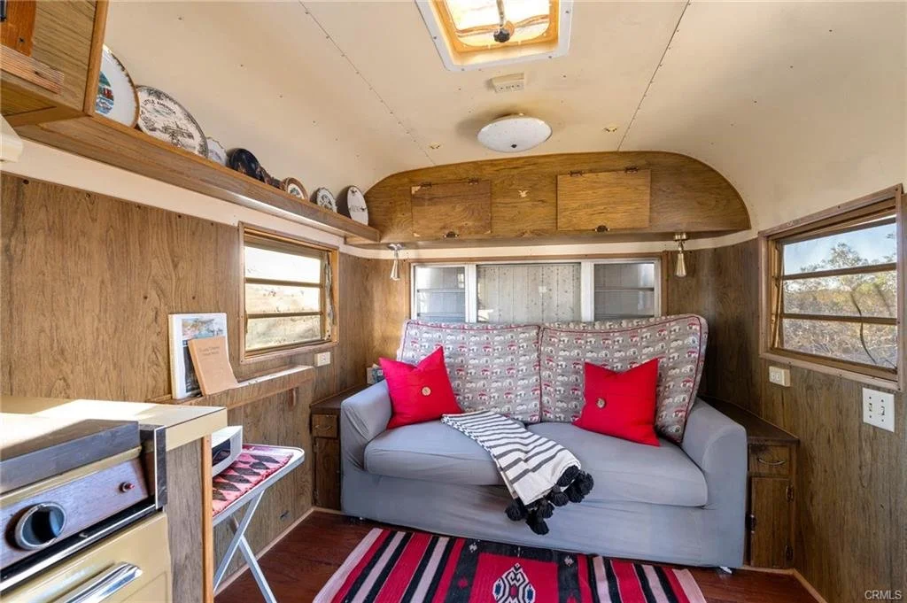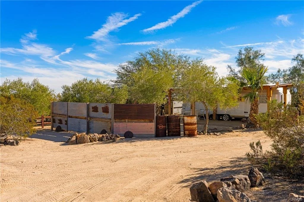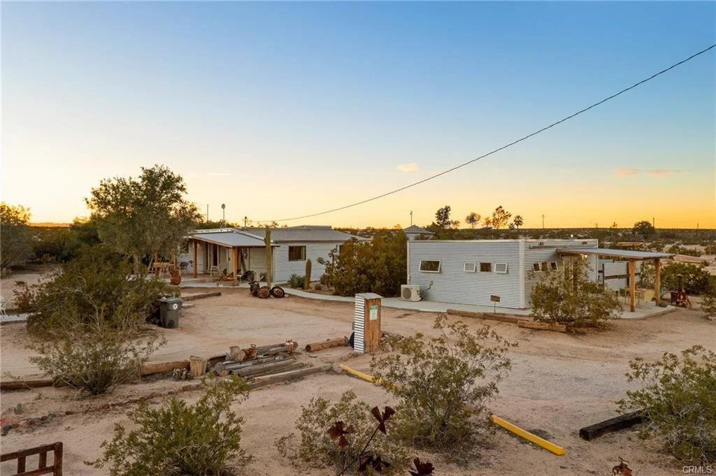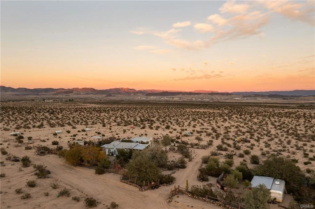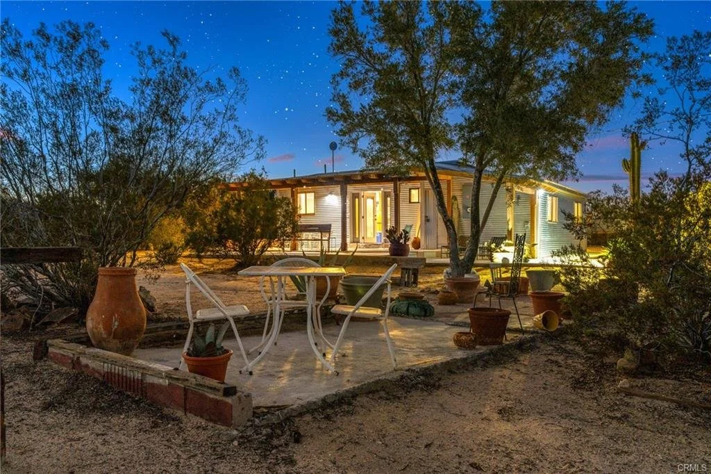 Discover your own private desert haven, where elegance and nature blend seamlessly on five enchanting acres. This remarkable compound invites you to experience a lifestyle of tranquil charm. At its heart lies a beautifully designed two-bedroom, two-bathroom main house, accompanied by a cozy studio casita complete with its own kitchenette and bath. Adding to the allure is a fully functional vintage Airstream station, thoughtfully connected to its own septic, water, and power, making it a perfect standalone retreat space. Every detail here is crafted for comfort and ease. With three newly updated septic systems and a modern electrical setup, you can enjoy peace of mind. There’s also an EV charger for added convenience. Step outside and find yourself surrounded by lush, mature olive trees and vibrant gardens, creating a green sanctuary that invites relaxation. Bordering open BLM land, you’ll enjoy breathtaking 360-degree mountain views and exceptionally dark skies perfect for stargazing. Just minutes from the western entrance of Joshua Tree National Park and the charm of downtown Joshua Tree and 29 Palms, this fully furnished short-term rental is a ready-made retreat. Whether you're looking for a perfect primary residence, a short-term rental opportunity, or a flexible mixed-use getaway, this property offers endless possibilities. (NOTE: Tax Records state 2-bedroom, 1-bathroom. Buyer is responsible to research to see if work was done with permits, and to confirm that this is a SFR and not a Rec Cabin zoning.)