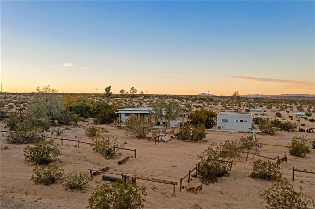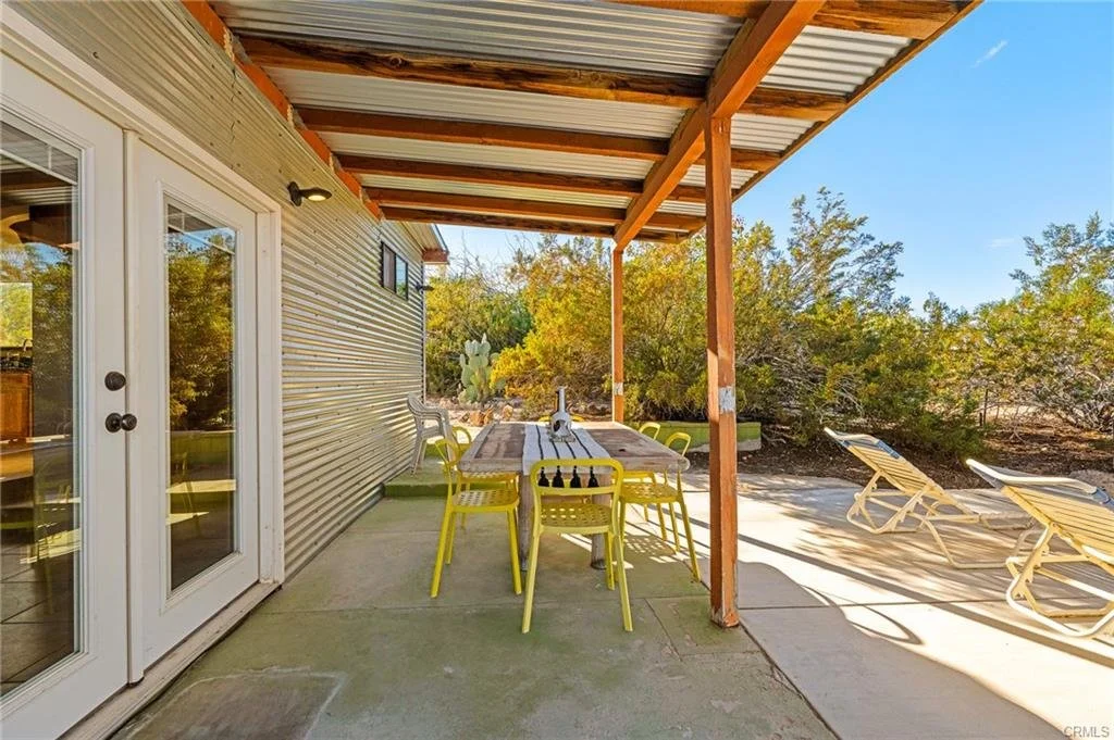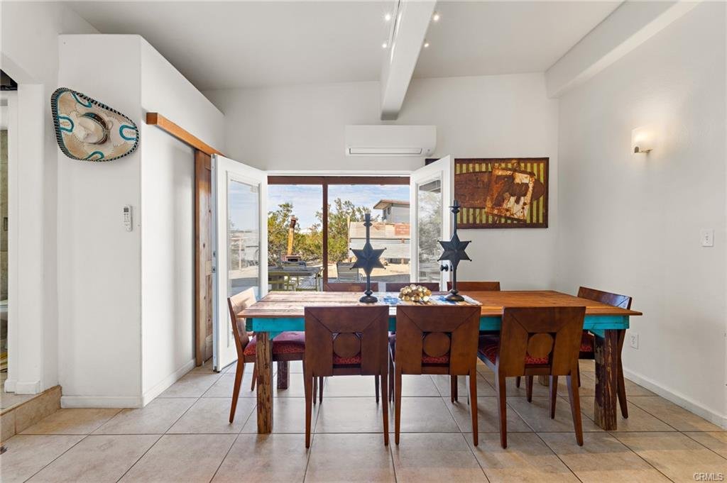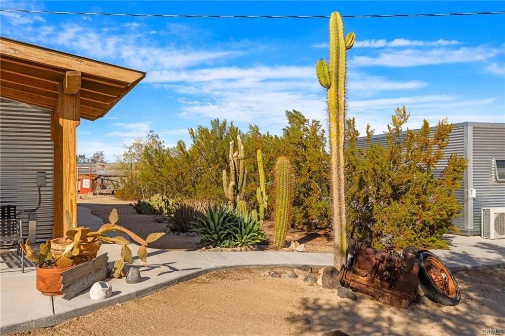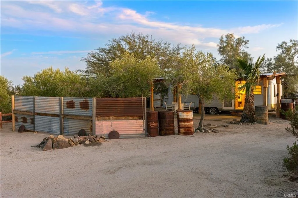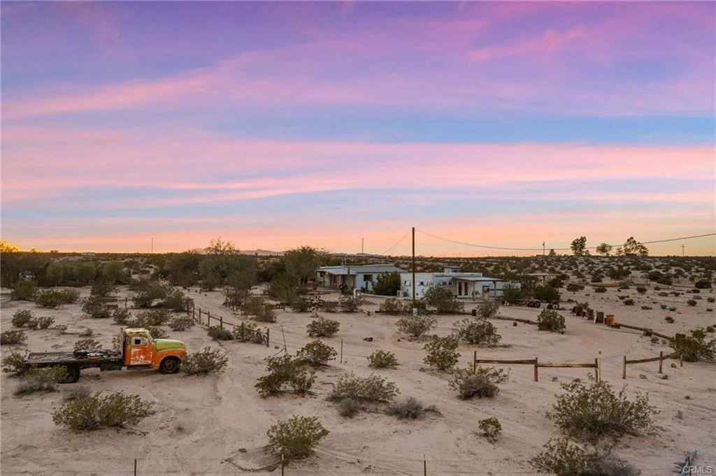 Discover your own private desert haven, where elegance and nature blend seamlessly on five enchanting acres. This remarkable compound invites you to experience a lifestyle of tranquil charm. At its heart lies a beautifully designed two-bedroom, two-bathroom main house, accompanied by a cozy studio casita complete with its own kitchenette and bath. Adding to the allure is a fully functional vintage Airstream station, thoughtfully connected to its own septic, water, and power, making it a perfect standalone retreat space. Every detail here is crafted for comfort and ease. With three newly updated septic systems and a modern electrical setup, you can enjoy peace of mind. There’s also an EV charger for added convenience. Step outside and find yourself surrounded by lush, mature olive trees and vibrant gardens, creating a green sanctuary that invites relaxation. Bordering open BLM land, you’ll enjoy breathtaking 360-degree mountain views and exceptionally dark skies perfect for stargazing. Just minutes from the western entrance of Joshua Tree National Park and the charm of downtown Joshua Tree and 29 Palms, this fully furnished short-term rental is a ready-made retreat. Whether you're looking for a perfect primary residence, a short-term rental opportunity, or a flexible mixed-use getaway, this property offers endless possibilities. (NOTE: Tax Records state 2-bedroom, 1-bathroom. Buyer is responsible to research to see if work was done with permits, and to confirm that this is a SFR and not a Rec Cabin zoning.)