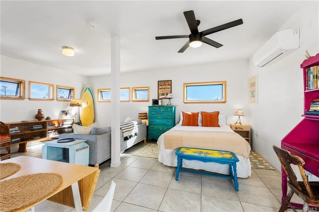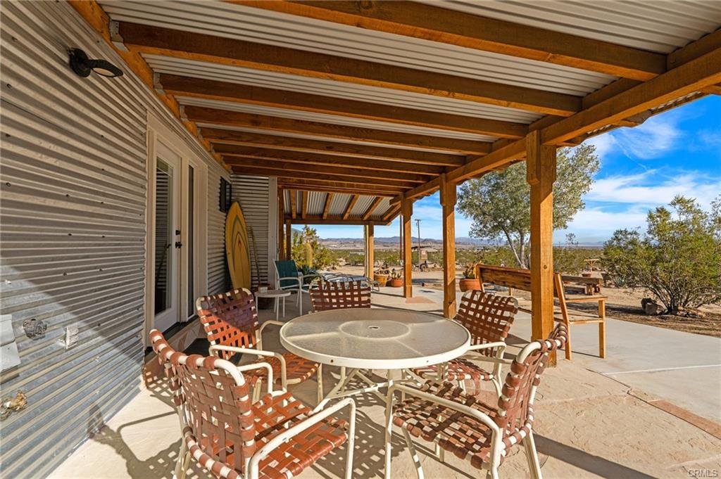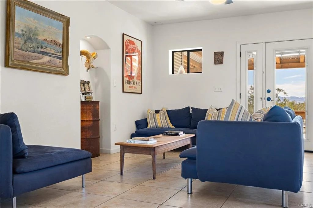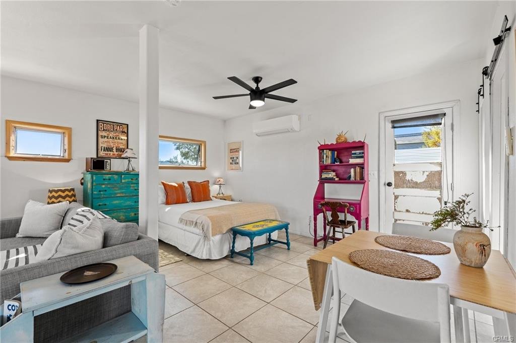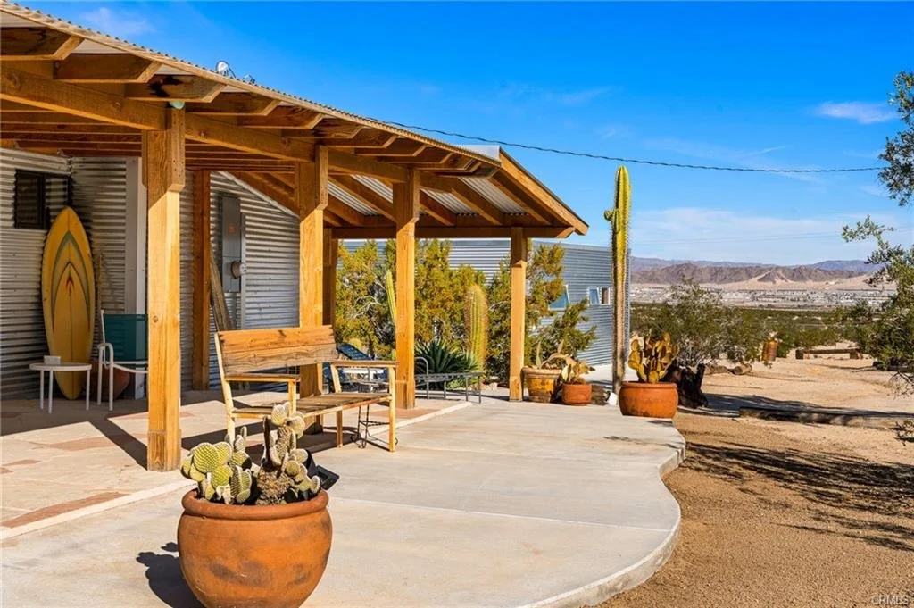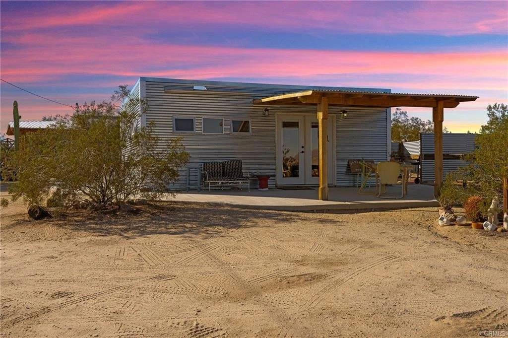 Discover your own private desert haven, where elegance and nature blend seamlessly on five enchanting acres. This remarkable compound invites you to experience a lifestyle of tranquil charm. At its heart lies a beautifully designed two-bedroom, two-bathroom main house, accompanied by a cozy studio casita complete with its own kitchenette and bath. Adding to the allure is a fully functional vintage Airstream station, thoughtfully connected to its own septic, water, and power, making it a perfect standalone retreat space. Every detail here is crafted for comfort and ease. With three newly updated septic systems and a modern electrical setup, you can enjoy peace of mind. There’s also an EV charger for added convenience. Step outside and find yourself surrounded by lush, mature olive trees and vibrant gardens, creating a green sanctuary that invites relaxation. Bordering open BLM land, you’ll enjoy breathtaking 360-degree mountain views and exceptionally dark skies perfect for stargazing. Just minutes from the western entrance of Joshua Tree National Park and the charm of downtown Joshua Tree and 29 Palms, this fully furnished short-term rental is a ready-made retreat. Whether you're looking for a perfect primary residence, a short-term rental opportunity, or a flexible mixed-use getaway, this property offers endless possibilities. (NOTE: Tax Records state 2-bedroom, 1-bathroom. Buyer is responsible to research to see if work was done with permits, and to confirm that this is a SFR and not a Rec Cabin zoning.)