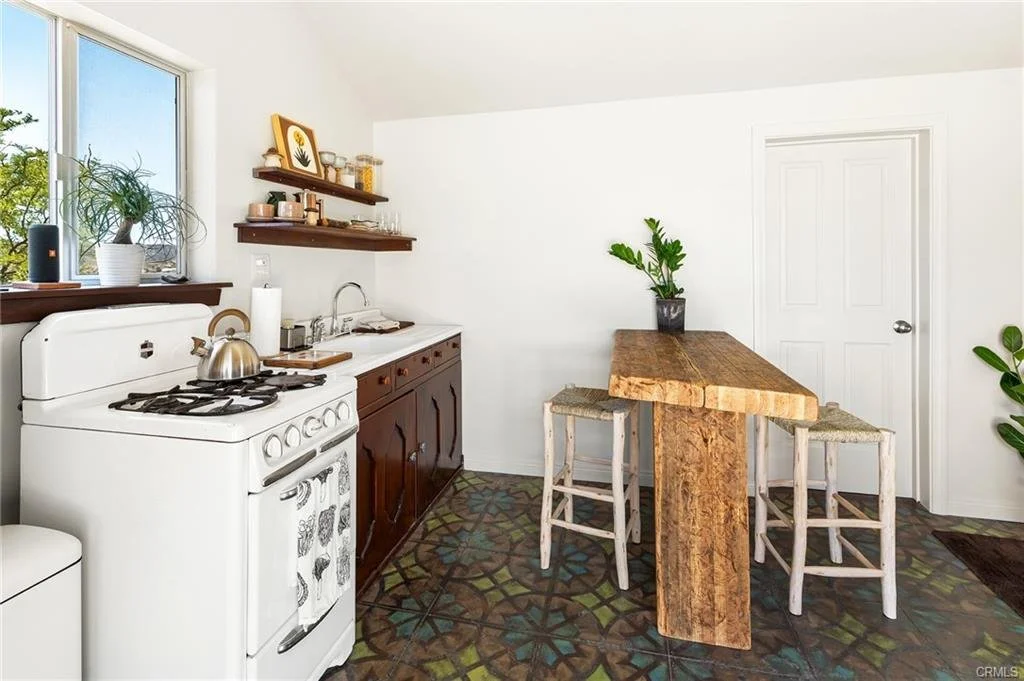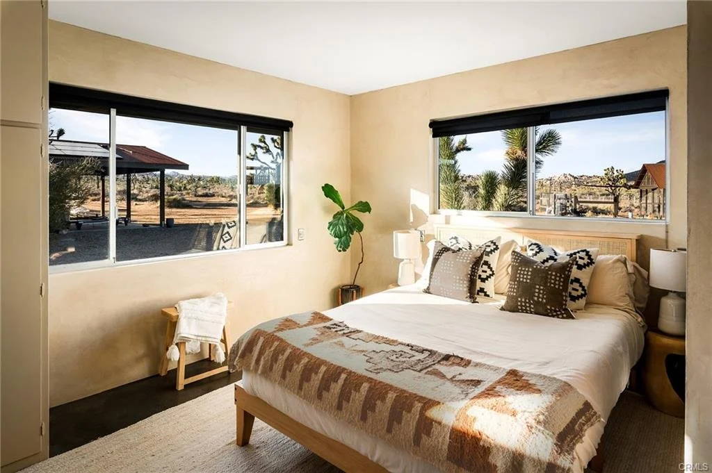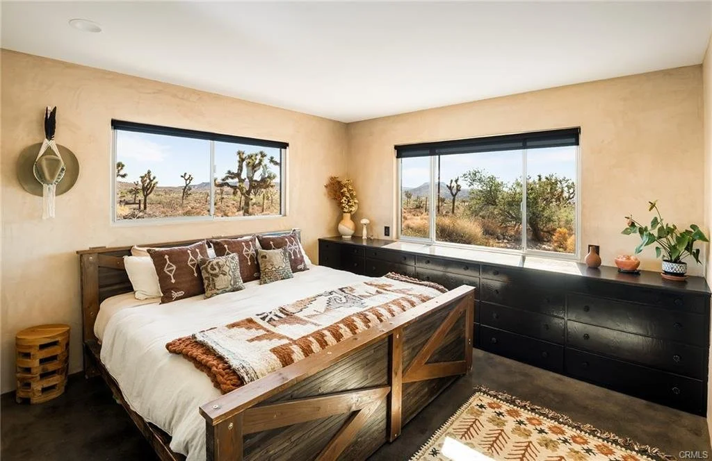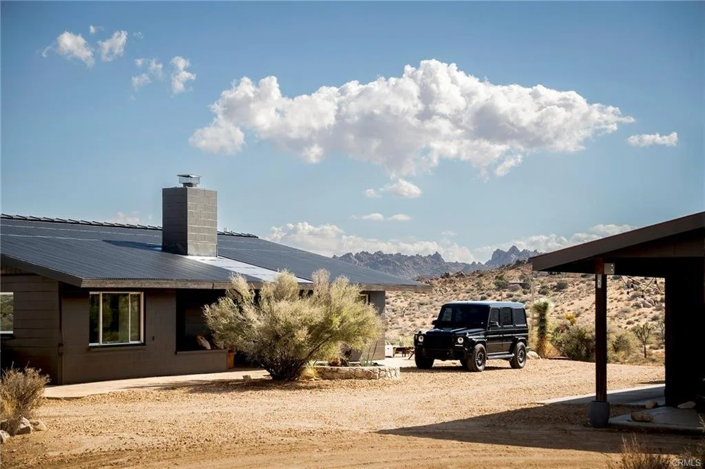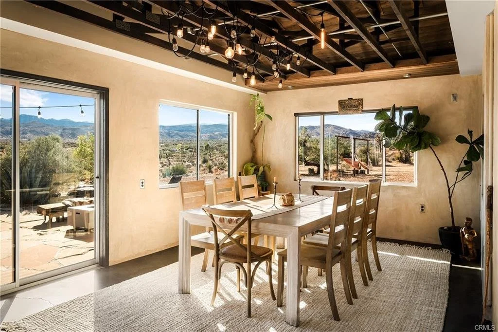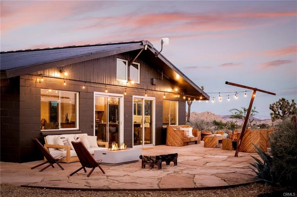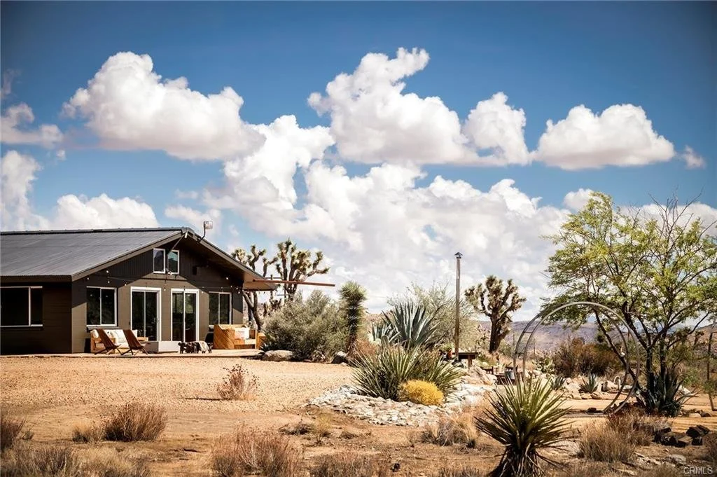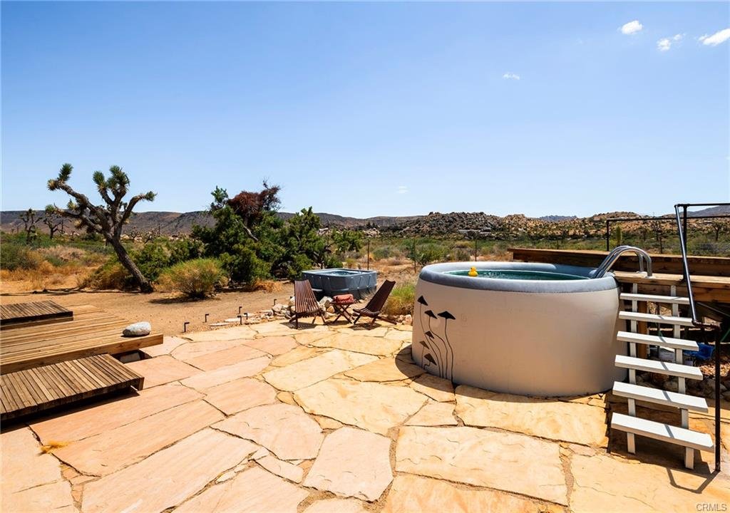 With breathtaking views spanning from the lava buttes of the Sand to Snow National Monument to ancient boulders and the distant peaks of Big Bear and Mount San Jacinto, this extraordinary 40-acre ranch offers a rare combination of natural beauty, privacy, and outdoor adventure. With direct access to miles of trails perfect for off-roading and horseback riding, the property is just minutes from Pappy & Harriet’s, Joshua Tree National Park, and the heart of Pioneertown. Every room captures a unique desert or mountain view, creating an inspiring indoor-outdoor connection throughout. Currently one year into the subdivision process, the parcel is being divided into four legal opportunities: a 20-acre main compound featuring the primary residence, detached 2.5-car garage with office, original 1932 homestead cabin, and stables; plus one 6-acre parcel and two 7-acre parcels. Easements are in place, and nearby electric poles allow for future utility access, making this both a lifestyle ranch and a long-term investment. The 1,527 sq ft main residence offers 2 bedrooms, 1 bathroom, and a bonus office. Venetian plaster walls, a newly remodeled bath with Italian and Moroccan finishes, and a chef’s kitchen with butcher block island and KitchenAid appliances blend rustic character with modern comfort. Additional features include a wood-burning fireplace with NuTone blowers and a paid-for solar system while remaining on-grid. The original 1932 homestead cabin (313 sq ft) is a fully equipped 1-bedroom, 1-bath retreat with a kitchen, soaking tub, and dipping pool—ideal for guests or additional income. Outdoor amenities include a cowboy hot tub, airplane-engine pool, horse corral, chicken coop with laying hens, playhouse, bike track, and garden room. A rare opportunity to own a working ranch, private retreat, and subdividable investment in one of Pioneertown’s most iconic settings.