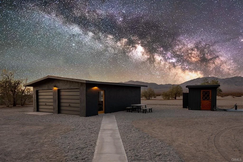 Welcome to the Parker Residence.... The Ace of Diamonds in Wonder Valley: A 1959 classic Mid-century Modern Boho-chic compound sitting on 5 acres with well! 360 degree unobstructed views from the Amboy mountains to the hills of Joshua Tree National Park! Completely remodeled & upgraded by a Hi-Desert/LA designer duo to a beautiful Contemporary Modern standard, featuring: brand new kitchen, bathrooms, floors, fixtures, countertops, upgraded electrical panel, new roof on all structures, a/c mini splits throughout, and more. This home offers the enjoyer an opportunity to explore the desert in luxury with an open floor plan taking in the views, and large dual master suites. West Suite has its own separate entry, tons of light, and stunning floor-to-ceiling tiled bathroom with golden sunken drain, floating shelves, anti-fog lighted mirror, and more. Extra large East Suite looks toward the Amboy Hills with its own bathroom & stylish Zen Modern walk-in shower and stone washbowl sink vanity. The desert is all about the indoor/outdoor lifestyle, and Parker does not disappoint! The huge detached garage has been converted into a luxurious game/entertainment lounge/art studio with new floors, A/C, and huge bay doors for large vehicles or off-road toys. Lounge in comfort from your multiple large covered patios, or stargaze from the sand at some of the most stunning night skies in the West in natural seclusion with hundreds of acres of untouched, raw virgin desert BLM land in the distance. Located 25 minutes to Joshua Tree National Park, 15 minutes to downtown 29 Palms with its blossoming nightlife, restaurants, cafes, and boutiques, 35 minutes to downtown Joshua Tree, and 75 minutes to Palm Springs. Buyer to verify all property characteristics, uses, zoning, permit history, square footage, etc., to its own satisfaction.