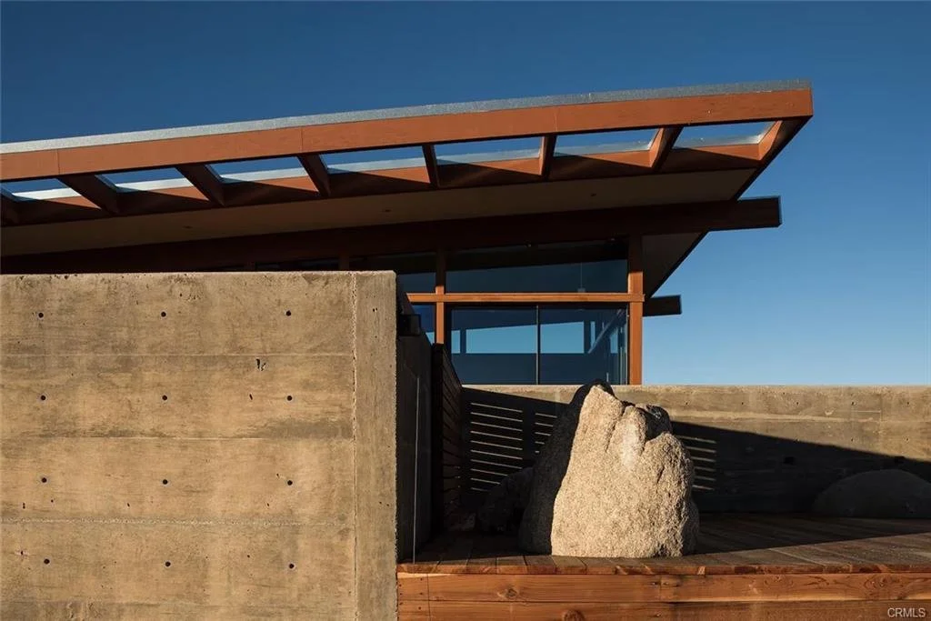 The New Joshua Tree: Premier architectural masterpiece designed and hand-built over nearly a decade (2004-2012) by a Harvard trained architect. Midcentury influence with modern green sensibilities, including radiant heated concrete floors, passive solar design for low heating/cooling costs and floor to ceiling windows throughout for abundant natural daylight. Handmade custom cabinetry and casework made of clear vertical grain Douglas fir wood. Abundant closet/storage space along entire north wall of the house. Formed concrete walls throughout. Beautifully designed entry foyer. Intimate nighttime views of downtown Joshua Tree in the distance and expansive daytime views of Joshua Tree National Park and surrounding mountains from all rooms. Secluded and tranquil location, yet convenient to town. Swimming pool enclosed on private deck. Property sits on border of Yucca Valley & Joshua Tree – adjacent parcel to east has a Joshua Tree address. Operated as exclusive vacation rental with successful rental history. Property is being sold as a rare architectural achievement for the local area. Shown by advanced appointment only. Loan Prequalification Letter or Proof-of-Funds required to show.