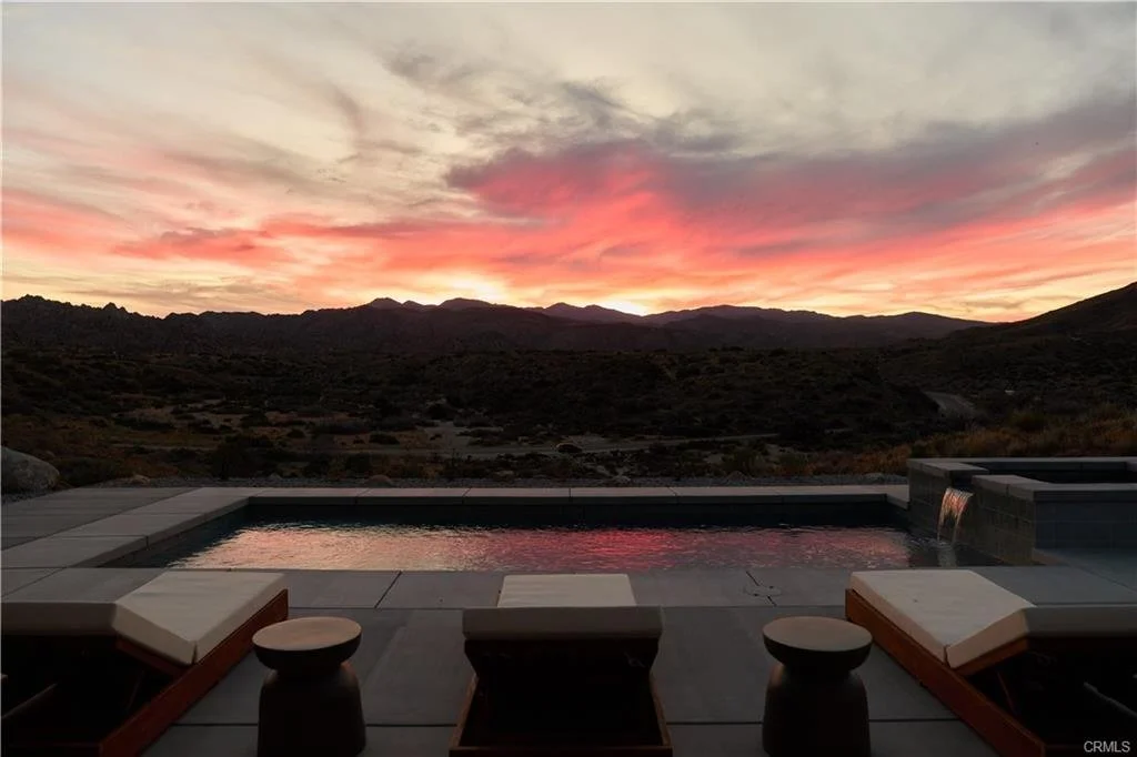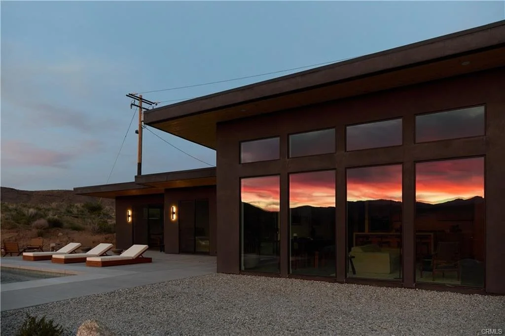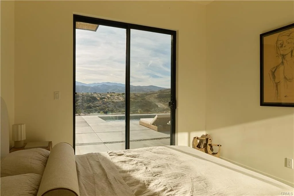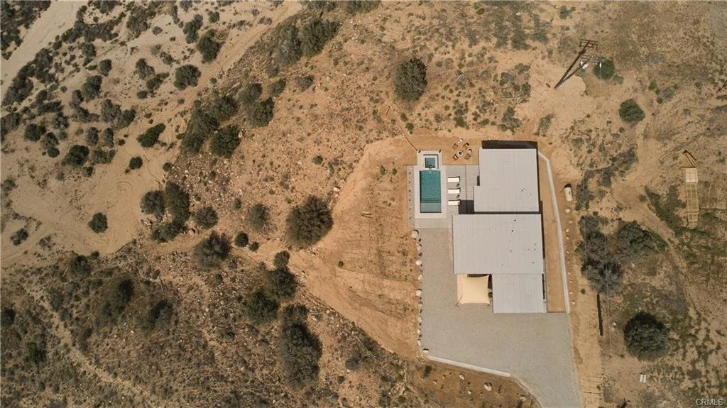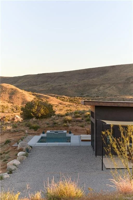 Welcome to Sorrel House, a custom-built architectural estate, set atop a protected bluff bordering protected Wildlands Conservancy and Pioneertown Mountains Preserve acreage that could remain untouched for generations. The views from this property are some of the finest in the hi-desert. Designed with a contemporary modern, minimalist/brutalist aesthetic, the home draws inspiration from Frank Lloyd Wright’s philosophy—“of the hill, not on the hill”—seamlessly integrating structure and landscape into Organic Modern design. The Santa Barbara smooth-finish stucco wrapping the home mirrors the tone of the surrounding buttes, creating a striking yet harmonious presence. Inside, custom earthen plaster walls, concrete floors, and hand-crafted white oak cabinetry deliver a refined, tactile desert-luxe experience. Oversized white oak doors and expansive sliders in every bedroom open effortlessly to the pool terrace, dissolving the boundary between indoor and outdoor living. The resort-caliber exterior features a large in-ground pool with waterfall spa, and a shaded dining pavilion just off the kitchen—perfectly oriented for sunrise coffees, golden hour dinners, and stargazing nights. The primary suite is a true sanctuary, with floor-to-ceiling tadelakt plaster, dual showers, and a dramatic wall-sunken overhead rain shower. Additional highlights include 3 bedrooms, 2.5 baths, a dedicated laundry room, and a large garage currently laid out as a yoga / fitness studio. Thoughtfully landscaped with native desert flora for beauty and low maintenance. Offered fully turnkey furnished. Bonus parcel with flat graded space, ideal for a future barn, studio, ADU, pickleball court or whatever your vision may inspire (buyer to check). Hike into The Preserve or walk over to Pappy & Harriet's for dinner & a show. Whether as a private retreat or a high-performing luxury rental, Sorrel House stands as a singular offering in one of the hi-desert’s most coveted settings.