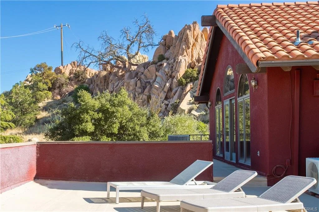 Topanga Canyon meets Joshua Tree! Boulder Grove Ranch is an expansive estate spanning over 8+ acres of privately owned hills and canyon. Nestled amidst a bouldered enclave and on the edge of two private boulder valleys, this thriving Airbnb property features a large two-story home with a spacious suite & private bath, a guest loft, a semi-detached guest house, and elevated views that stretch for miles. The interior has been thoughtfully re-designed with a blend of modern, rustic, and bohemian elements, creating a cozy and effortlessly luxurious ambiance. Originally intended as a beautiful second-home escape and part-time income property, the estate has hosted a magazine-worthy private wedding, as well as professional photo shoots thanks to the expansive detached barn and deck built into the boulders. Traverse intersecting paths adorned with quaint signposts reading "Ceremony, "Hammocks," and "Labyrinth," guiding you toward the enchanting features of this magical estate. The attached guest house with a separate entrance presents a unique opportunity for dual living arrangements, rental potential, or additional space for large gatherings. The estate is surrounded by untouched natural beauty that rivals Joshua Tree National Park, establishing itself as one of the premier destinations in the entire High Desert. Whether you prefer stargazing from the boulders or indulging in a sunset soak in the oversized round cedar spa, the possibilities are as vast as the surrounding desert landscape. Embark on hikes right from your doorstep, exploring some of the most breathtaking terrain the desert has to offer. Despite its remote ambiance, the property is conveniently located on the outskirts of Yucca Valley, seven minutes away from the nearest shops, providing easy access to all amenities, with Joshua Tree National Park and Palm Springs just a short drive away. The property spans three lots that encompass three-quarters of the land enveloping the cul-de-sac, creating a truly peaceful and private sanctuary. A rare gem... don't let this one slip by!