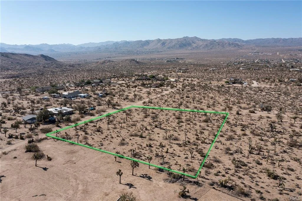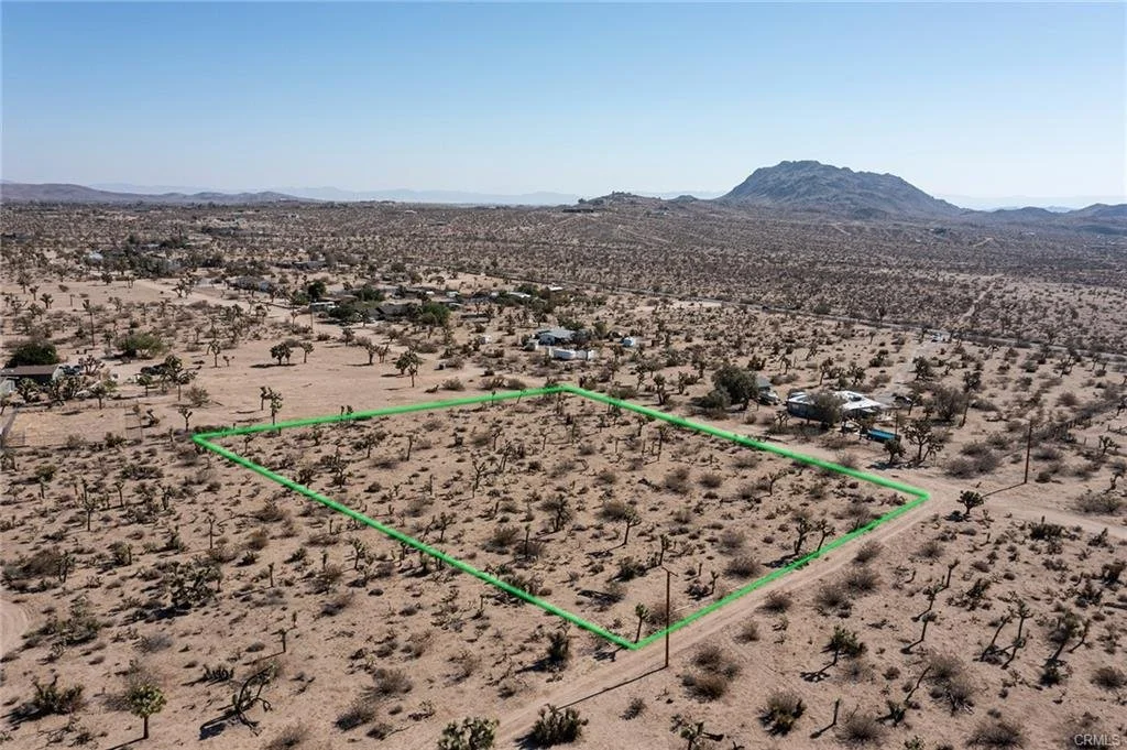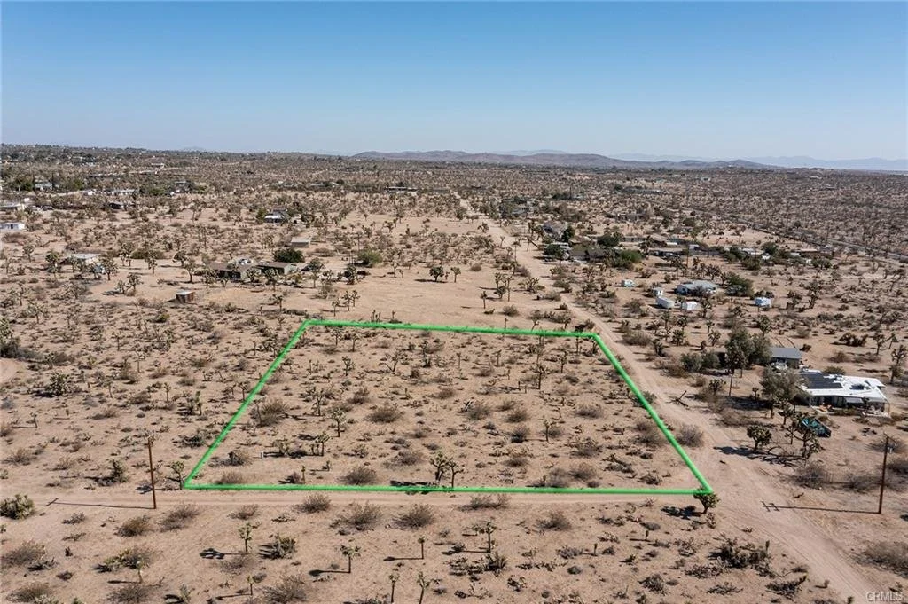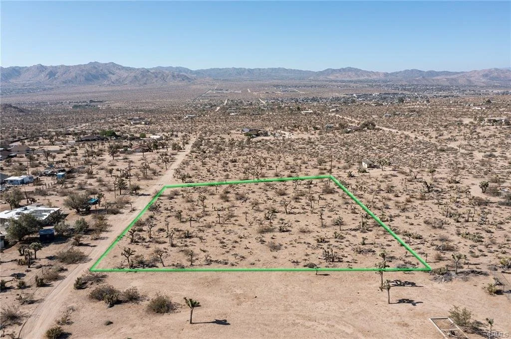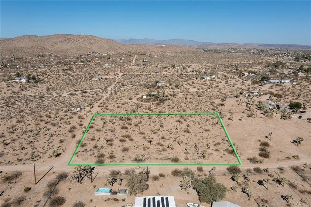 2-ACRE PARCEL, located in desirable, rural part of Yucca Valley, with views to the south of the mountain ridgeline in Joshua Tree National Park. Plans have been developed for this property have been developed to code, but at not presently approved. Water & Electricity nearby. Great location. Official street address has already been assigned to parcel to help expedite development and approval of building plans. NOTE: Green lines demarcating boundaries in pictures are approximate. APN: 0598-061-20