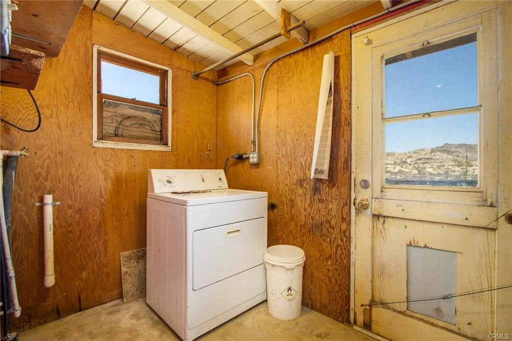 Spectacular Windy Gap location, tucked up near the Bartlett Mountain Range. While only minutes to downtown Joshua Tree, this property features a unique rural setting. Government-owned land surrounds three sides of the property – to the south, west and north – providing a permanent privacy barrier for those looking to get away from it all. Beyond the government-owned land stands hundreds of more acres of California Desert Land Conservancy owned property that will never be developed, offering what feels to be endless wilderness to the south and west that you can hike on to your heart’s content. All utilities are in place including a working city water meter and active Southern California Edison electricity. Housed is zone SFR – single family residence – and parcel is spread over 5 BIG ACRES. For those looking for Old School Joshua Tree, this is as good as it gets. Home needs TLC and, as a result, is being sold for Cash Only or hard money loans, but no conventional lending or standard loans as this property does not fit criteria required for conventional loans. Possibly the most private location presently available in the Joshua Tree area. Must see to appreciate the surroundings.