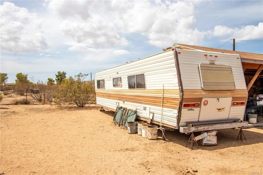 Flamingo Heights Madness! Single Family Residential (SFR) Home for LESS THAN $250K on a sprawling 5-ACRE LOT!!! Walking distance to hiking in the historic Pipes Canyon Wash, running along Pipes Canyon to near Pioneertown. Look out the front door and gaze at the Sands to Snow National Monument just a short distance away. For those in the know, Flamingo Heights has long been a sleeper – that’s waking up. Rural yet paved roads to shopping nearby in Yucca Valley, close to the back route to Pioneertown and great eating and shopping in your own neighborhood. Home boasts a beautiful prickly pear cactus garden – which owner often cooks in his handmade oven; the oven is perfect for pizza as well! One of a kind desert homesteader cabin that is zoned SFR with SCE electric and Big Horn Water District public meter, along with a NEW septic tank, this fully functioning home makes a great starter home to the discerning buyer. Purchase include a travel trailer, with Title, also connected to the septic for extra space for family or friends or to sleep in while remodeling main house. Cash preferred; seller unfortunately unable to complete any repairs, so property is sold in “As-Is” condition. With such a huge lot, one could develop the extra land into two separate 2.5 acre parcels, with a house and guesthouse one each for a total of 4 (buyer to check) down the line. Or keep as one and preserve this fantastic space. Beloved home for father of family. Special person desired. Close to town, close to wilderness, in the middle of nowhere while not too far from anywhere: Exactly where you need to be!