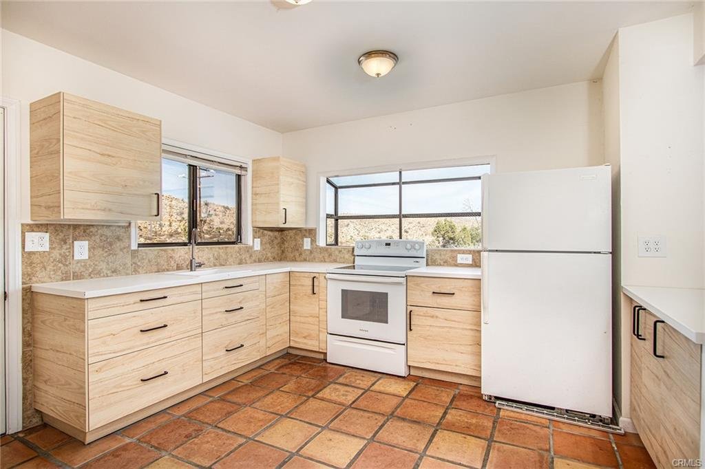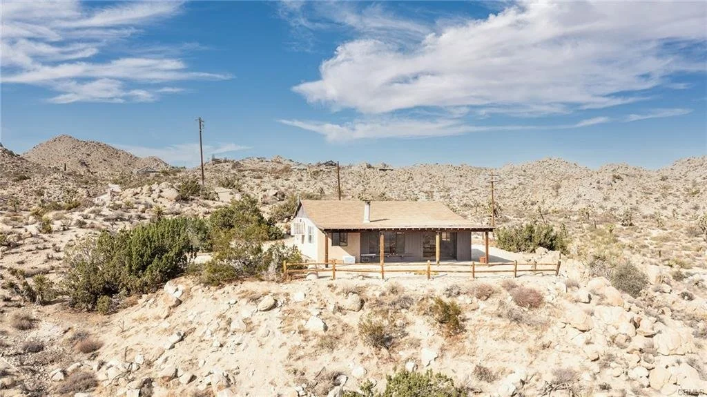 RARE, REMOTE, WILDERNESS compound minutes to downtown. TWO HOMES located on one rocky 5-ACRE parcel with views of the city below and Joshua Tree National Park beyond. City Water connected to both homes. SCE (Southern California Edison) Electric connected – each home has its own electric panel. The main home sits atop a prominent spot, facing east, overlooking hundreds of acres of undeveloped land below. The guesthouse is surrounded by hills and boulders providing privacy. Main house has been upgraded; guesthouse in need of remodel. Paved road frontage is only a few hundred feet property border. Sublime surrounding wilderness. No need to drive to the National Park, when the entire property is surrounded by boulders, rocky peaks, Joshua trees and mountaintop vistas. Access property through prestigious Western Hills, but no HOA fees. Live in one unit as your Primary Residence while your tenant/guest rents the other to help pay the mortgage. One of the most unique locations and configurations of any property in Yucca Valley.