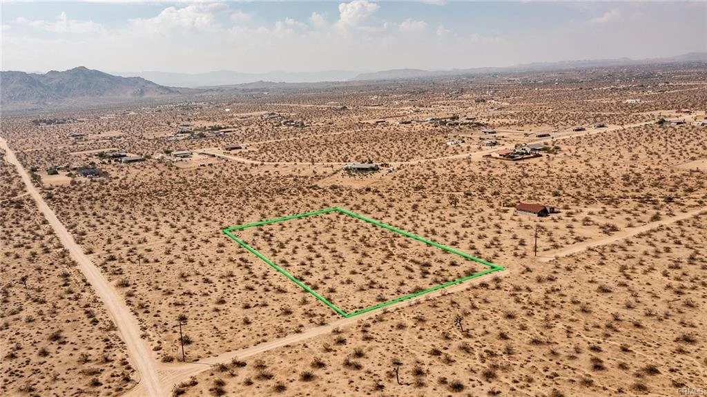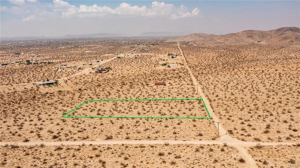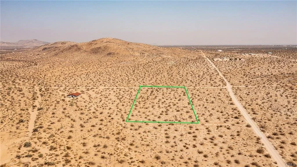 2.32-Acre Lot located in up-and-coming area of North Joshua Tree. Water & Electricity (utilities) nearby. Several new homes in the area. Great views from this elevated location. Rural. Surrounded by vast wilderness. Mountains nearby. Hiking. Fantastic sunrises to the east. NOTE: Green lines demarcating boundaries in pictures are approximate, as property has not been surveyed; street address is not official – do not use address or google map GPS to locate property. To find property, please locate with APN: 0599-501-08
