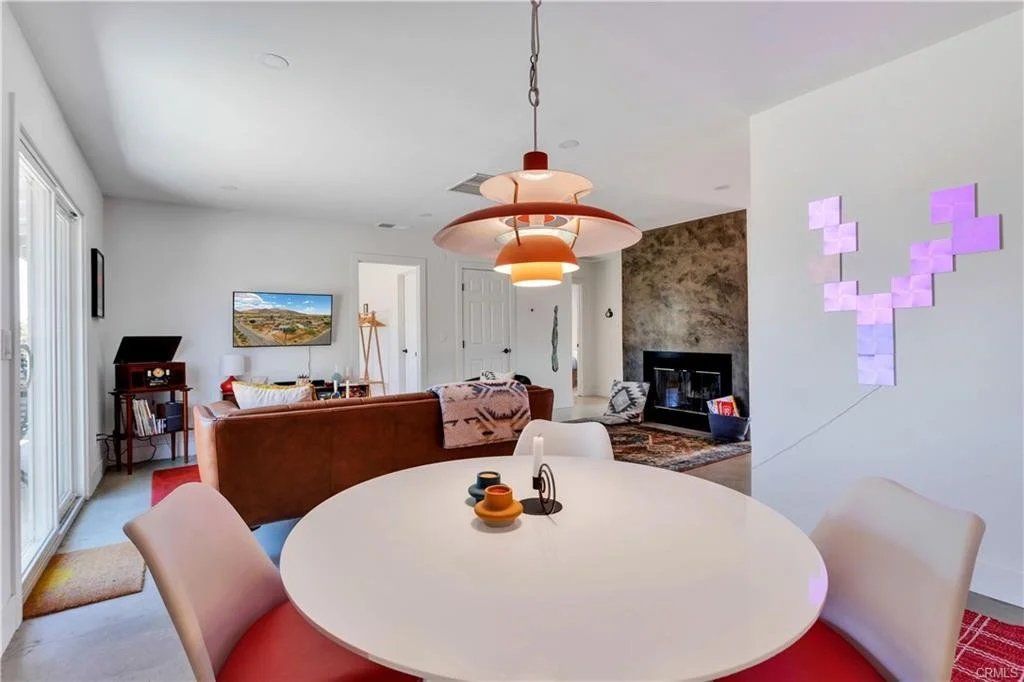 Newly Remodeled Modern Desert Getaway: Tastefully updated in every way from the polished concrete floors to the modern rebuilt kitchen with floating shelves and high-end appliances, to a completely redesigned bathroom with microment shower walls, along with the similarly custom plastered fireplace in the open living area of this incredible indoor/outdoor home. Step outside to enjoy stargazing or napping in the comfort of an outdoor 10-foot weatherproof dome with a clear roof and AC/heating, that acts as an additional queen-sized outdoor bedroom. Cool down in the pool, then warm up in the brand-new hot tub, and rinse down under the outdoor shower when done! There’s even a newly-built outdoor bathroom, 3 fire pits with mountain views and remote wilderness hiking just a short distance away. Only a short 3-mile drive to downtown for dining and shopping and a few minutes further the Joshua Tree National Park gate. Finish the day in the game room/garage that comes full to overflowing with pool table, console video game, foosball, darts and more. This amazing property comes as a fully-furnished/turnkey permitted Airbnb, or purchase as your vacation getaway or primary residence. No Seller financing. SELLER MOTIVATED. BRING OFFERS!