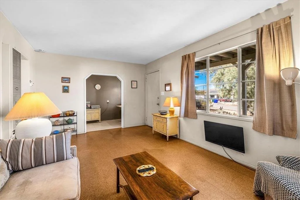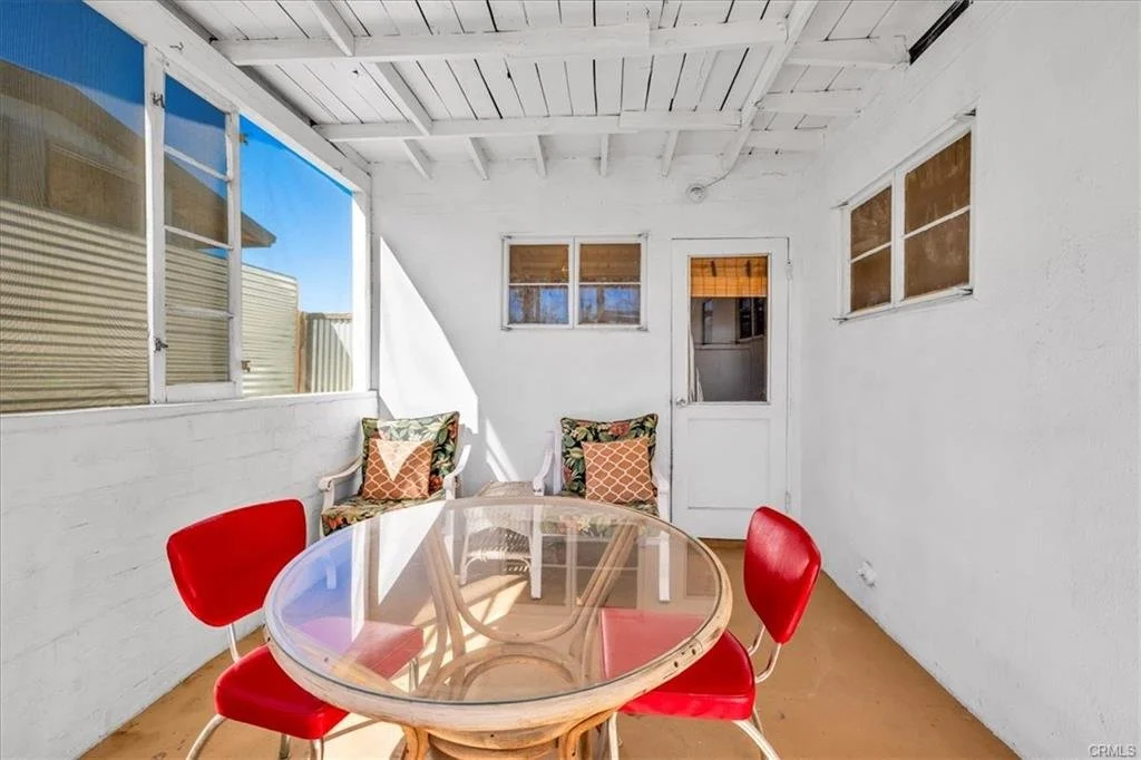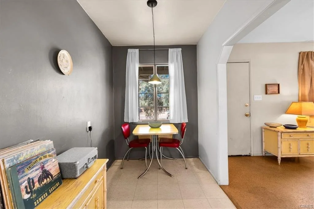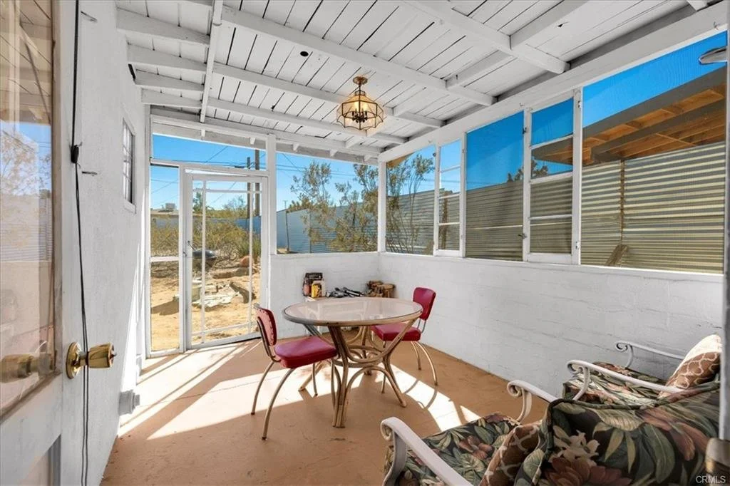 Authentic 1953 midcentury cabin offering a serene desert retreat just minutes from downtown Joshua Tree. Thoughtfully preserved with original charm, the home is filled with warm light and a cozy, intentional ambiance that feels both timeless and calming. Enjoy morning coffee on the shaded front porch and unwind in the private, fully fenced backyard—ideal for quiet evenings under the desert sky. The property offers a flexible layout, including a detached garage with potential for creative use or future expansion (buyer to verify). Currently used as a part-time short-term rental, providing optional income offset when not in residence. Equally suited for full-time living, a weekend escape, or a low-maintenance second home. Walking distance to downtown shops and dining, and close to iconic hiking destinations including Coyote Hole and nearby boulder landscapes. A rare opportunity to own a peaceful, design-forward desert hideaway in one of Joshua Tree’s most desirable pockets.