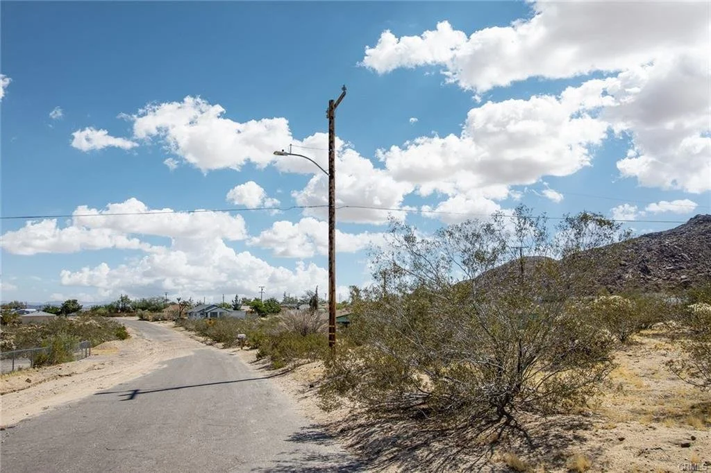 Excellent vacant lot in downtown Joshua Tree with views of boulder mountains to the southeast. Water main and SCE electric are in the road – lot is ready to build. An official S.B. County street address has already been assigned to this parcel, the first detail needed to apply for building permits. Green lines in pictures demarcating boundaries are approximate, as property has not been surveyed.