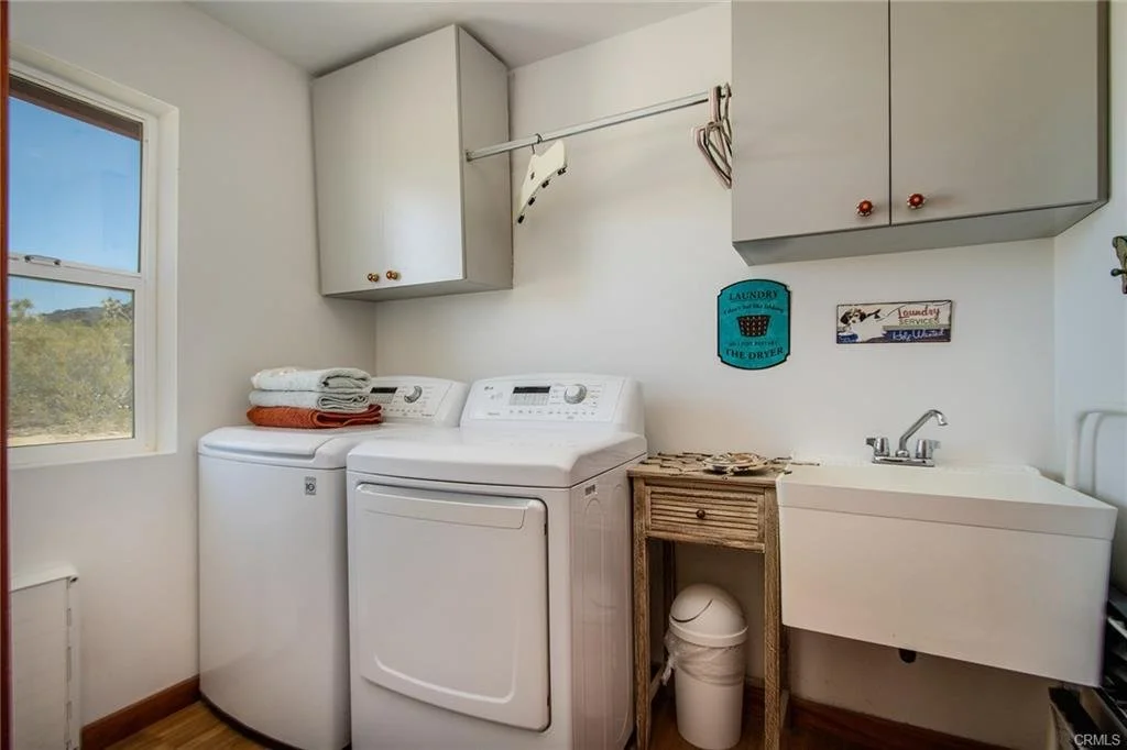 Monument Manor Estate: Most prestigious location in Joshua Tree, near front gate of the National Park. Panoramic wilderness views. Hike or ride from front door. Originally built as an equestrian estate, this fully-fenced family-friendly property provides safety for children, pets and horses. Spacious 3-bedroom, 3 bath home spread over nearly 2,000 square feet, featuring custom flourishes, such as a high-end finished aquatic themed primary ensuite bathroom. Wood flooring throughout provides additional warmth. Turnkey, fully-furnished. Built by a General Contractor for his own family home, naturally only the highest quality materials, finishes and craftmanship was used. The large 2.6-acre parcel features a RV area with hookups for electricity and septic. Huge garage for parking, storage or additional work-from-home office space. A back entrance gate allows one to come-and-go privately without traffic concerns. Elevated location near the top of the Monument Manor neighborhood. In a neighborhood where many homes sell for well over a million, this property is reasonably priced per market conditions. Fully-paid solar for energy efficiency, fenced for safety in exquisite surroundings and finished with only the best.