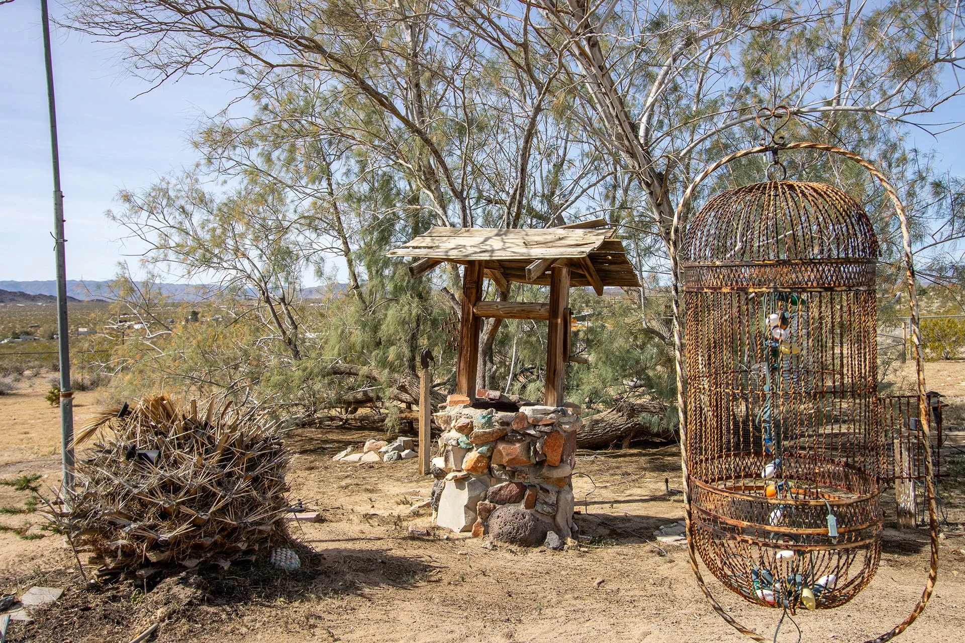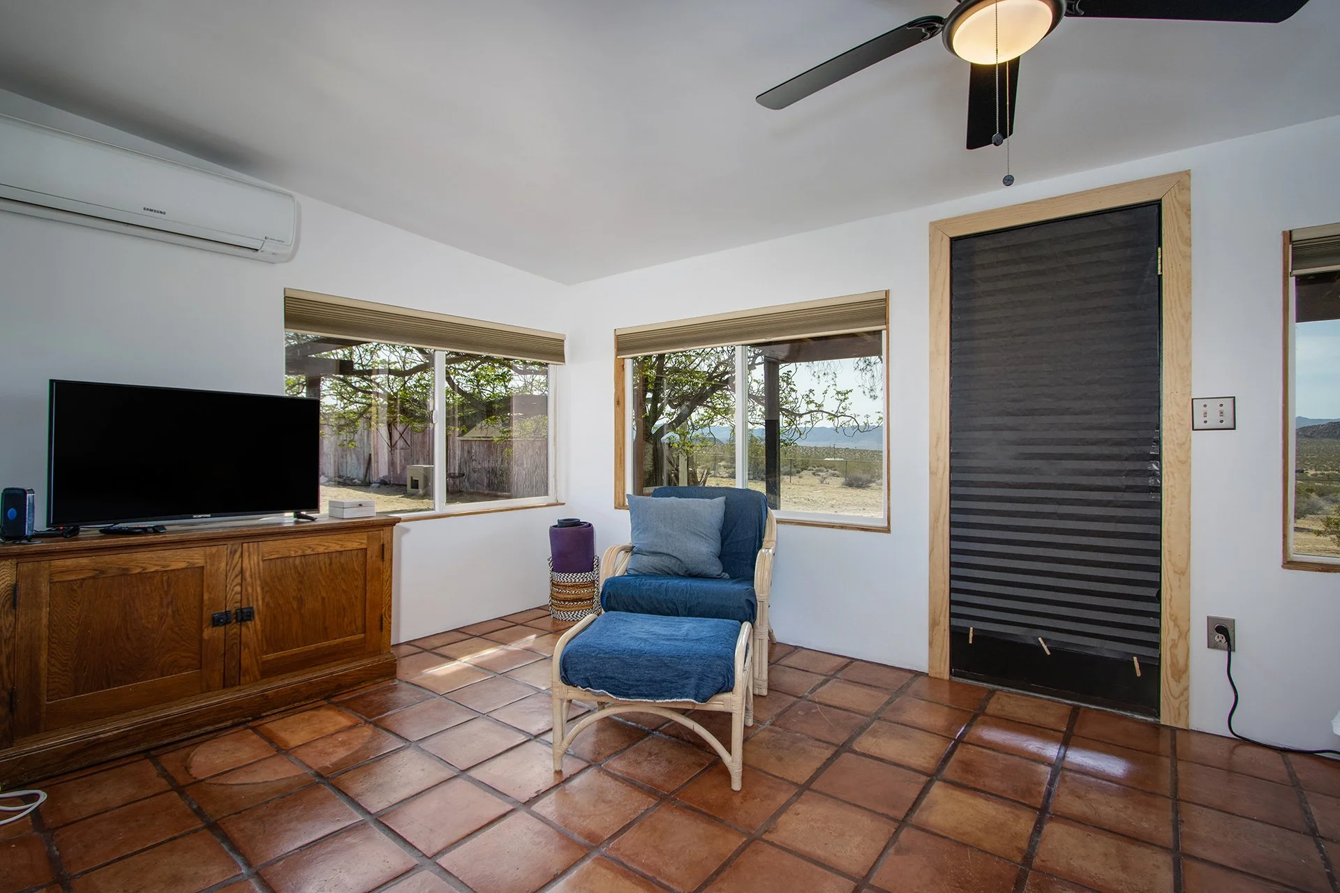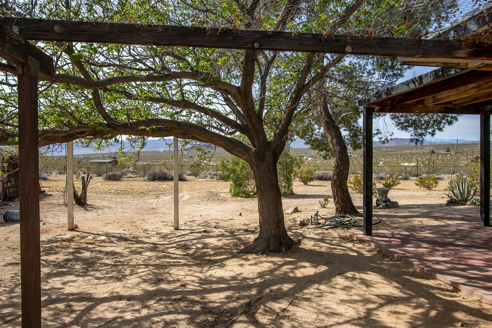 BEST LOCATION/PRICE presently in Joshua Tree: Near End-of-Road atop a hill, overlooking Copper Mountain Mesa and National Park ridgelines to the south. Views of SoCal’s two highest mountains - San Jacinto & snowcapped San Gorgonio. Arguably one of the finest locations in Joshua Tree for those seeking remote solitude for well under $300k. Nearly 5-ACRES of supreme beauty, spread over 2-parcels, providing future investment possibilities. Two parcels allow for 2 Primary Homes (SFRs) and 2 Guesthouses (ADUs) – as a result, Buyer could build three additional structures a total of 4 permitted structures to live in (buyer to investigate w County). Current home includes new dual-pane windows, new water heater, new refrigerator, new ceiling fans and a new insulation/dry-wall in ceiling of main room for heating/cooling efficiency. Mature landscaping and shade trees. Ductless mini-split AC/Heating. Container included for extra storage space. For those looking for their desert dream getaway, look no further. Note, Green lines demarcating parcel borders are approximate and not the result of a survey. Directions – DO NOT USE GPS or Google maps – instead, follow these directions: Go north on Border Ave, right (east) on Winters Rd, the left (north) on Mt Nebo Rd. Home located at top of hill on the right. Or find via APN: 0632-322-24