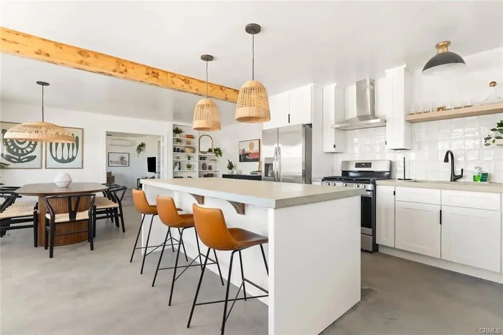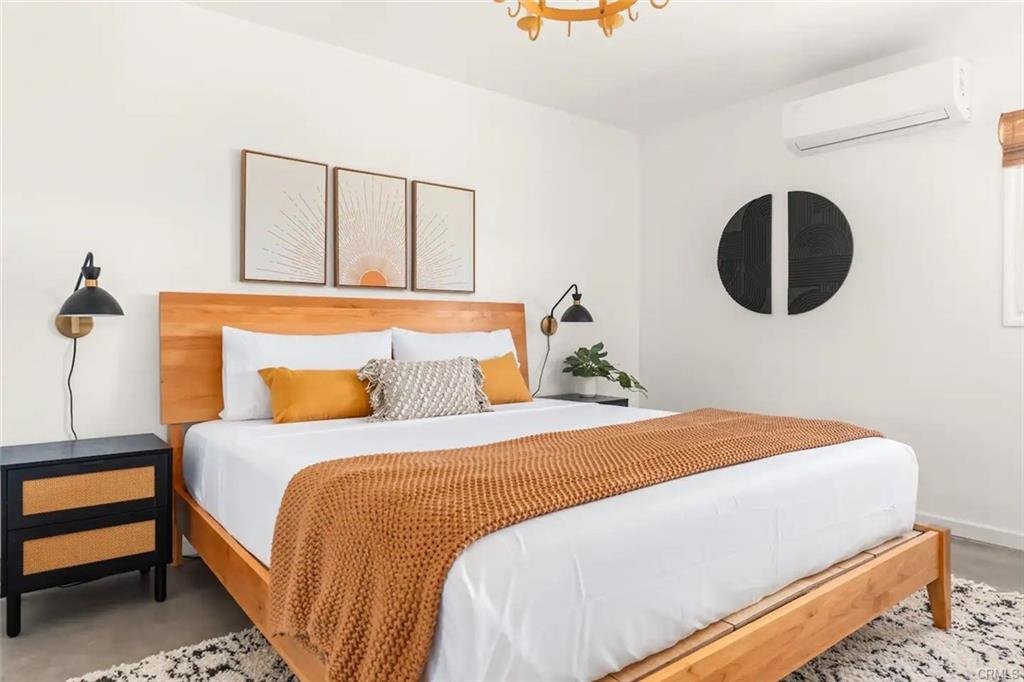 Zen Oro Retreat w/ Spa + Private Yard + Newly Remodeled, Updated and FULLY FURNISHED home. Spacious 4-bedroom, 2-bathroom house with polished concrete floors, new ductless mini-split AC/heating units throughout and beautifully handcrafted updated. Located in the Sunfair area of Joshua Tree and walking distance to the ancient dry lakebed. Short drive to Joshua Tree National Park. Completely new kitchen top to bottom, including cabinetry, counter-to-ceiling tile backsplash and custom concrete counters. Exposed beam provides organic wood warmth. Exquisitely remodeled and updated bathrooms. Design and furnished of high aesthetic value. Exterior includes, large enclosed yard, covered outdoor patio dining area, hammocks, hot tub, propane fire-pit, propane BBQ. Family & pet friendly ambiance. Also included is an entire second building near the back of the parcel and could be used as a garage for storage, studio or converted into a second home to use as a guesthouse.