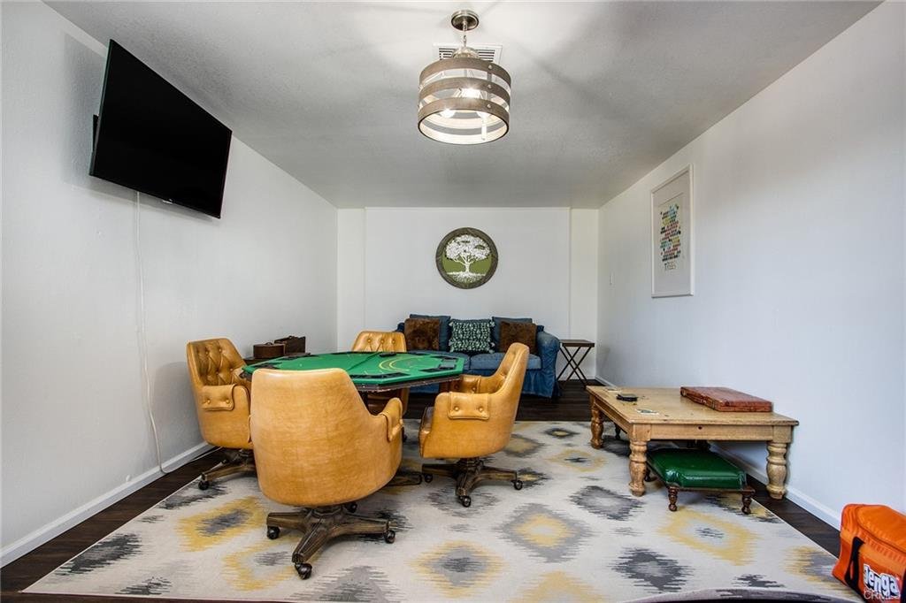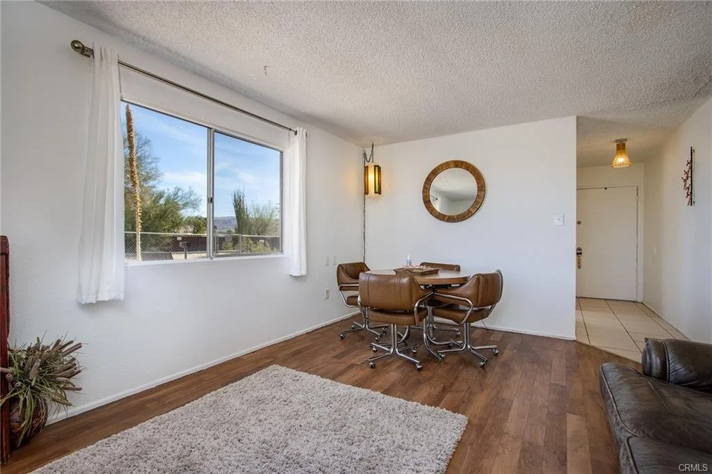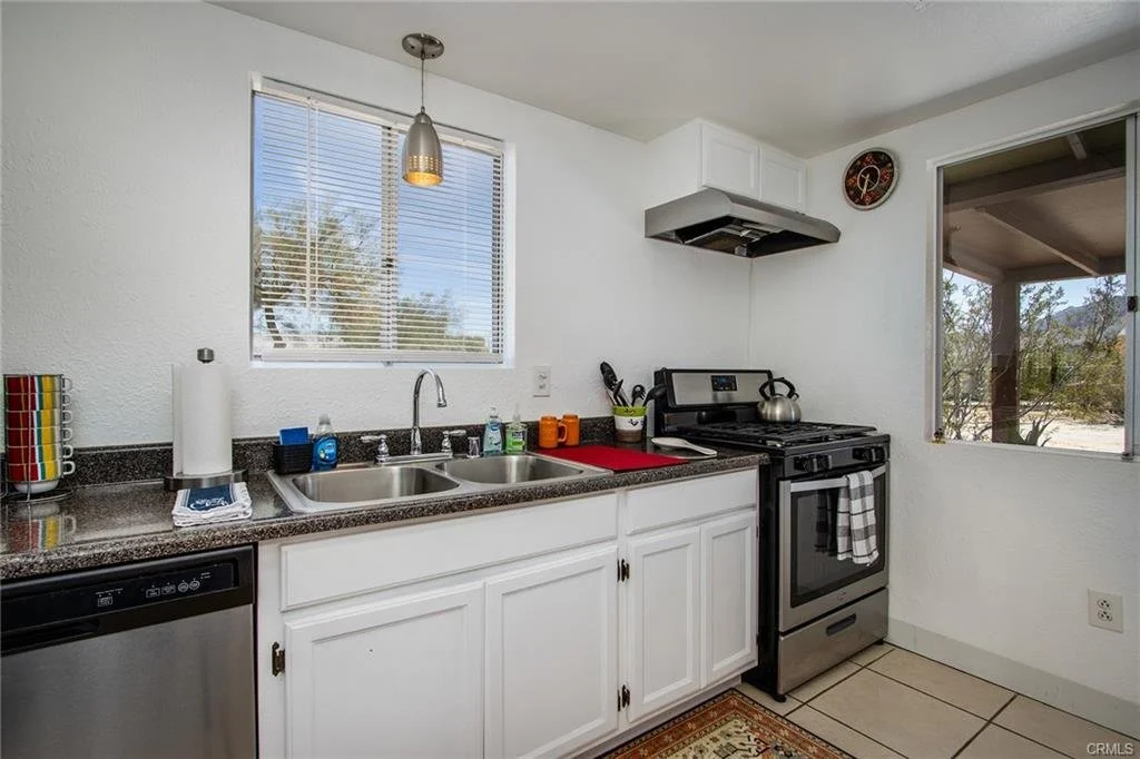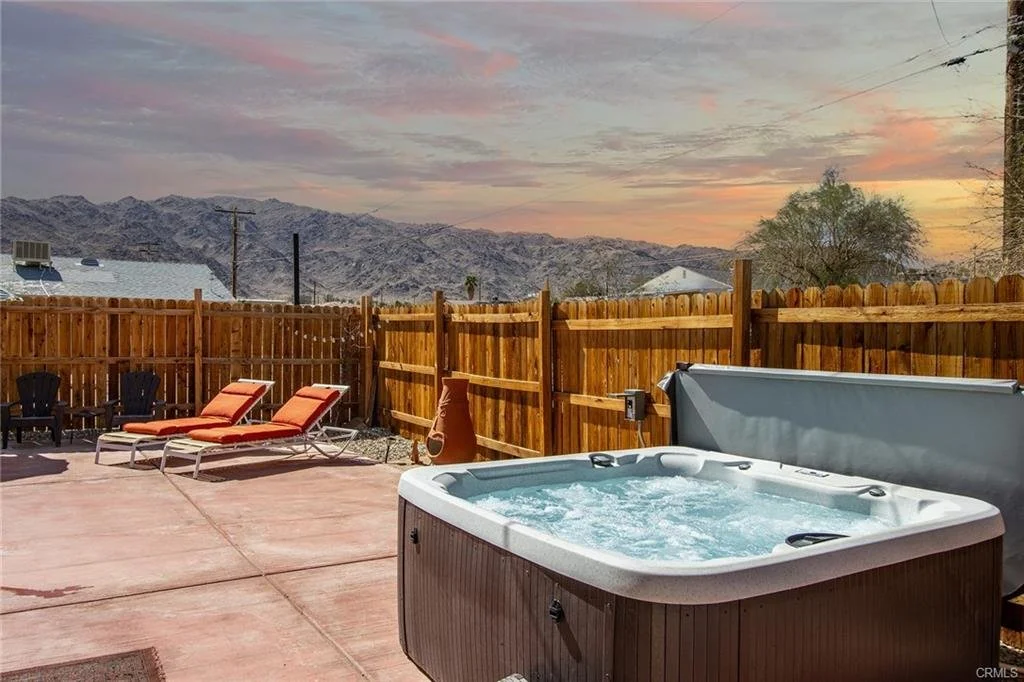 Fully-furnished/turnkey 2bd/1bth Airbnb in walking distance of Freedom Plaza and the quickly growing downtown 29 Palms community scene. Currently a highly-rated Airbnb, home comes ready for continued short term rental success or possible easy transition for single Marines moving to the area. Simple remodel features subway tile shower, bar counter and cabinetry in the kitchen, and new flooring throughout. One of two bedrooms currently furnished with king and queen bed could be easily changed to office/workspace in addition to the already existing game room, complete with poker table and dart board. Corner .33 acre lot is fully fenced with second, inner privacy fence around established patio area with hot tub, pergola, multiple permanent shade structures, yard games, and more. Washer/dryer, two car garage, and many more amenities to make this property a great deal!