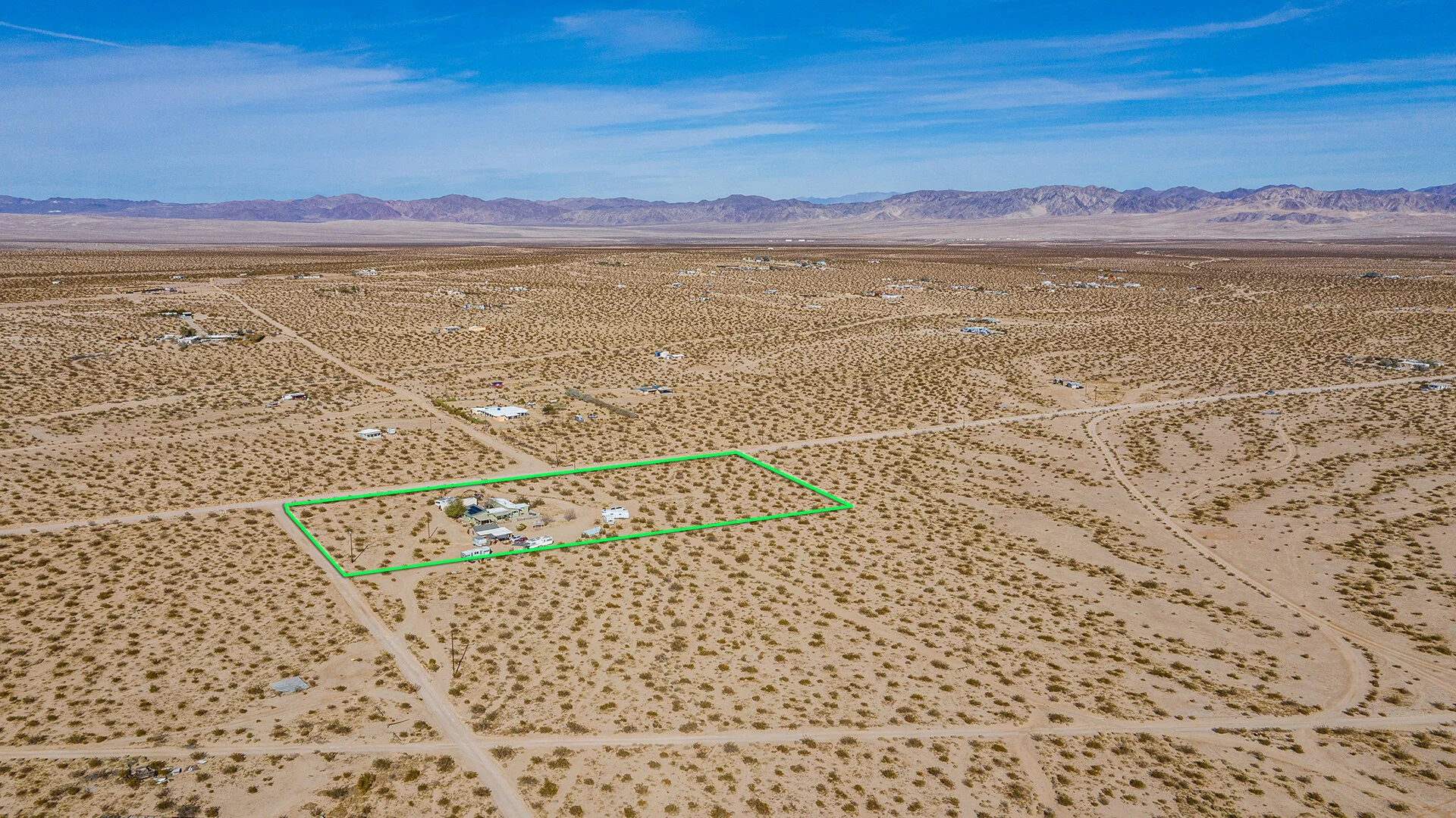 Moonlight Mesa Compound includes main house, garage with guesthouse conversion, outdoor bathing area for trailer court, all spread over 5 acres in the heart of North Joshua Tree. Government-owned land on adjacent eastern and southern parcels preserving privacy indefinitely. Panoramic views of National Park to the south. Endless hiking in every direction. Conveniently located on Winters Rd. Local Community Center nearby for weekend pancake breakfasts to meet your neighbors. Active community but plenty of privacy. House features an east wing and west wing with central living room connecting the two. Cozy breakfast nook off kitchen to enjoy sunrises. Circular driveway for easy parking. Perfect artist or music retreat. Mediation and yoga areas on southern porches. Property can likely be split into two 2.5-acre parcels (buyer to check) for future plans. Serene, remote location yet only 15 minutes to downtown Joshua Tree for shopping, eating or farmers market.