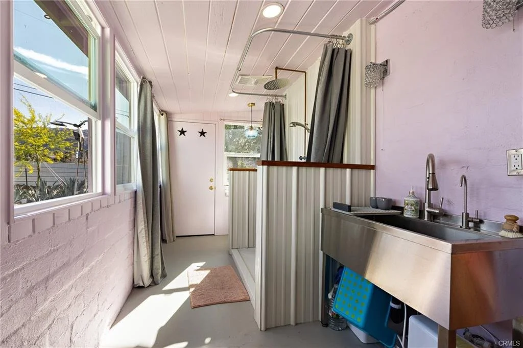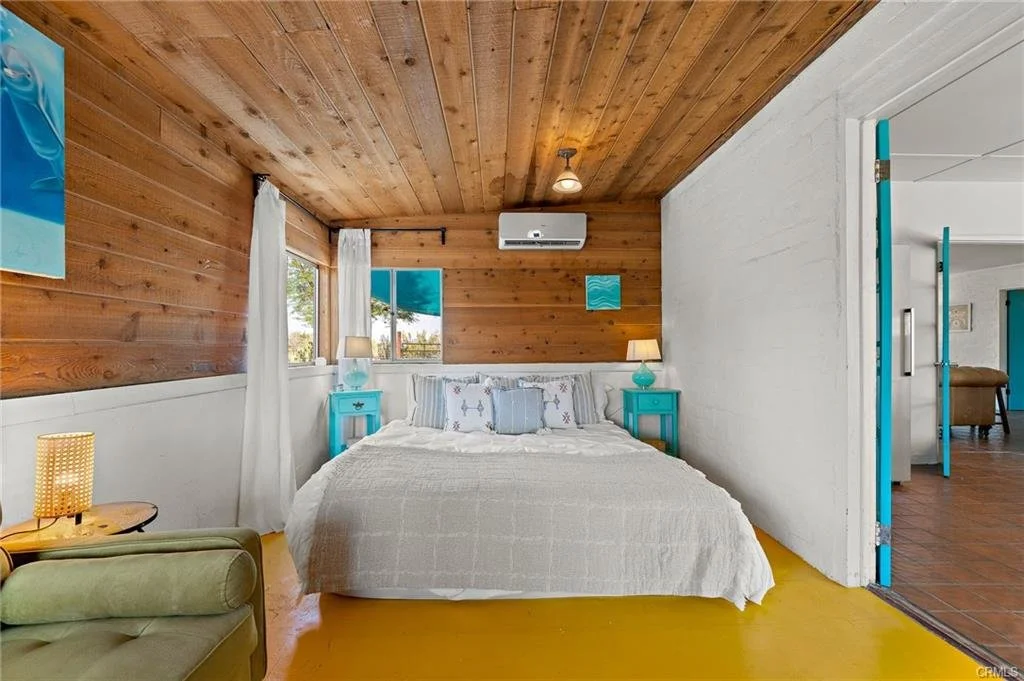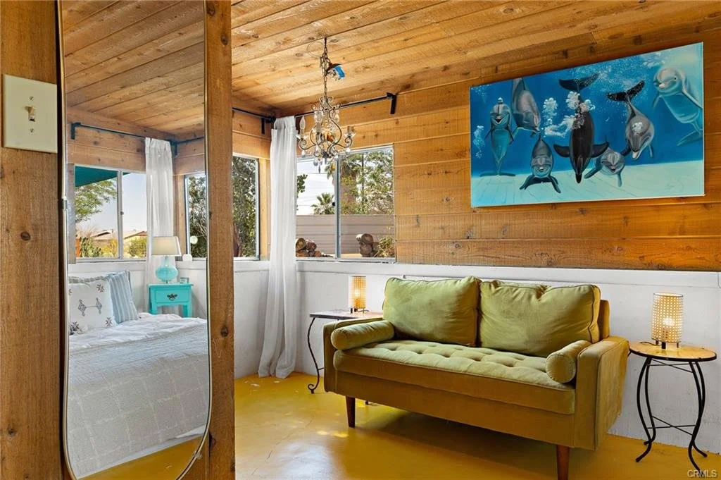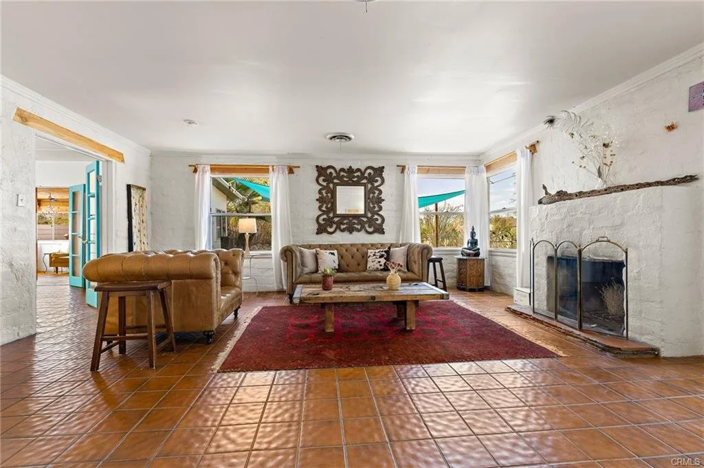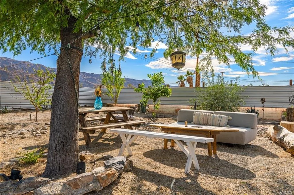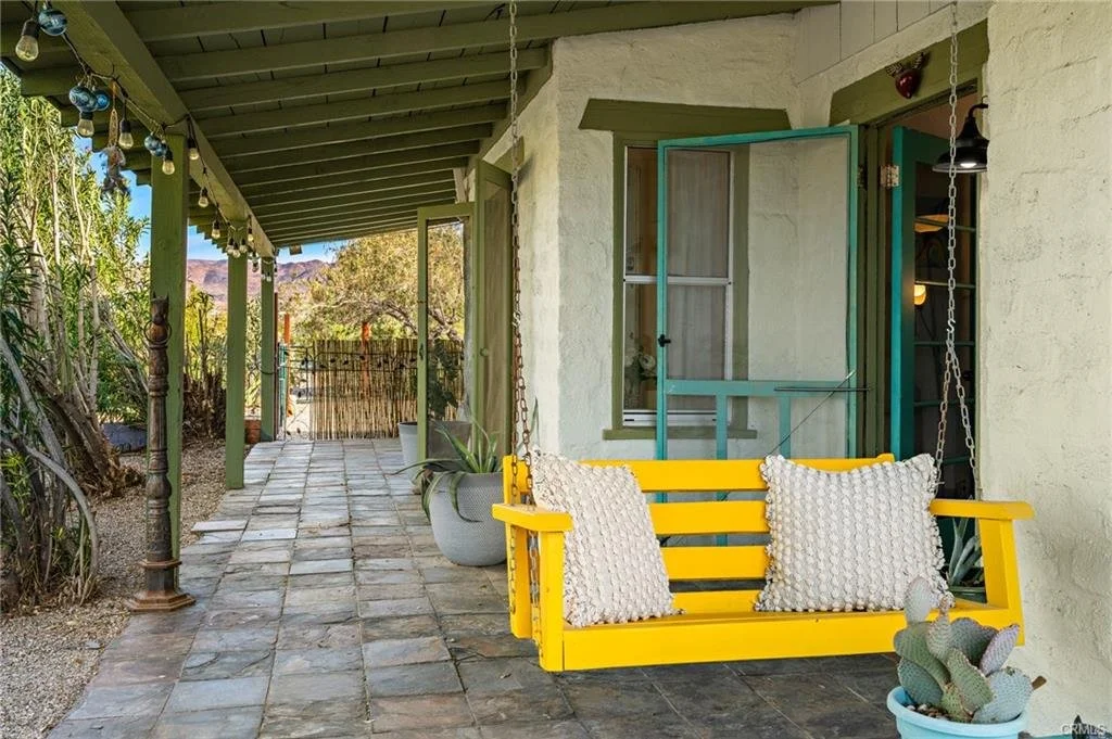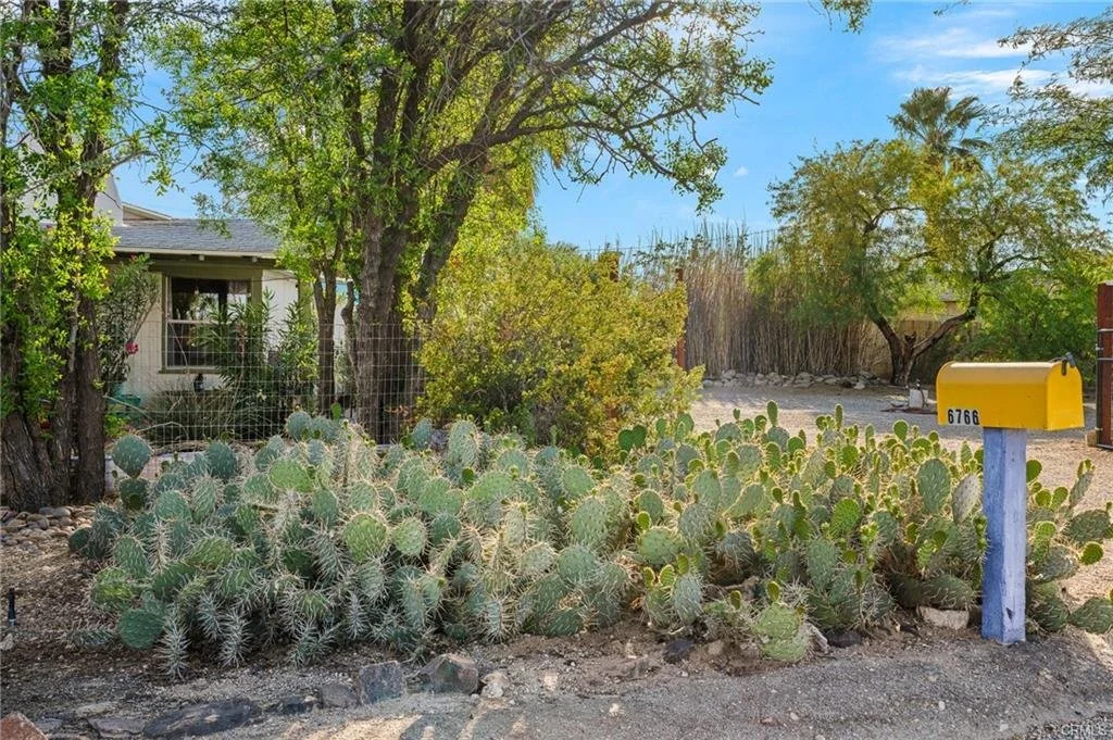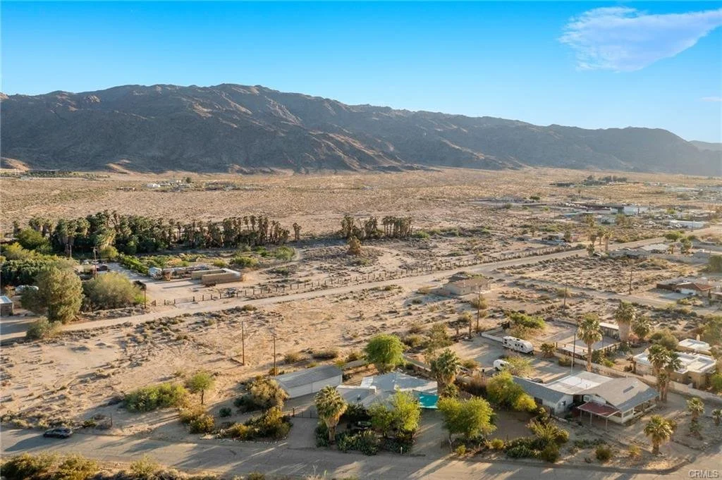 HISTORIC 1938 ADOBE: This architecturally significant property – featured in Historic Adobe Homes magazine – offers timeless desert appeal. Located within walking distance to the iconic 29 Palms Inn, Kitchen in the Desert and downtown Twentynine Palms, providing a rare opportunity to own an authentic adobe home in one of the town’s most desirable settings. Situated on a .51-acre triangular parcel uniquely positioned so the point of the lot faces directly toward the iconic Oasis of Mara, creating a setting that feels deeply connected to this remarkable natural landmark. Set against the mountains in a prime Twentynine Palms location, the property enjoys beautiful back views of the mature palm groves, with towering palms, mature trees, cactus gardens, and a peaceful breeze from the nearby natural spring pond adding to the sense of a true desert oasis. The home is surrounded by vacant lots on two sides, enhancing the sense of seclusion and making the parcel feel unusually expansive and private. This 3-bedroom, 2-bath home spans 1,491 square feet, with a layout that creates an easy connection to the outdoors, as most rooms have direct access outside, blending indoor and outdoor living. Recent improvements include new windows, a new water heater, a new kitchen counter, and new ductless mini-split heating/cooling system for efficient year-round comfort. The home also features a wood-burning fireplace for ambiance, a front porch facing open desert vistas and lush gardens for morning or evening beverages, in addition to an outdoor shower, private backyard, 4-car garage, and a 220V hookup ready for a future hot tub.