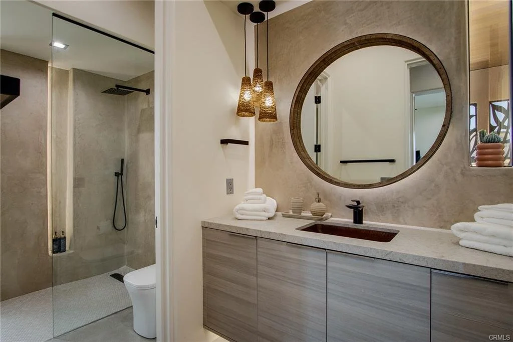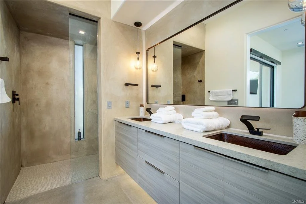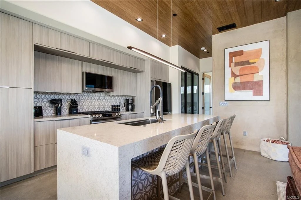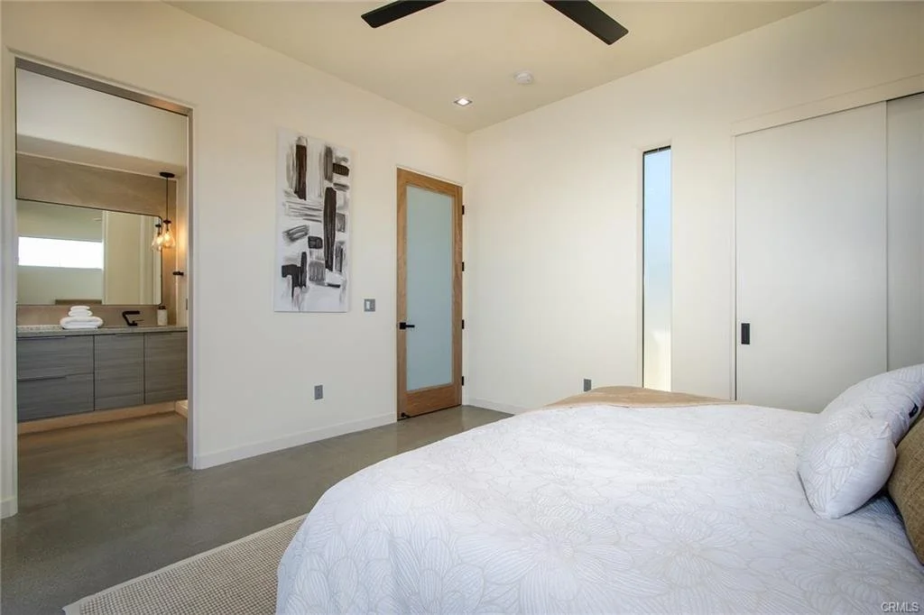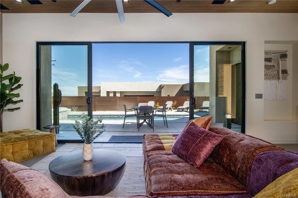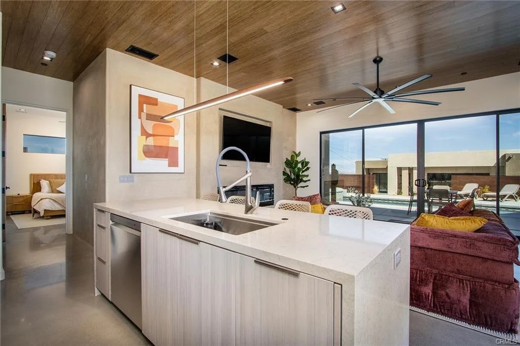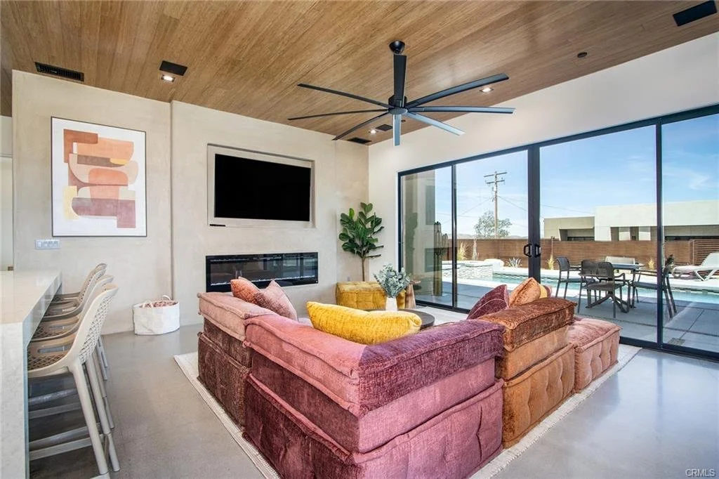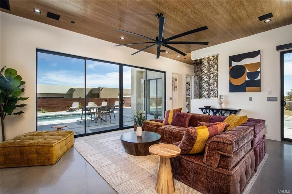 INCREDIBLE VALUE: High Quality New Construction w Custom Pool/Spa. Evoque Modern’s stunning contemporary designs have raised the bar for new construction and set a new standard for contemporary modern living in Joshua Tree. The newest builds are located just over the border in 29 Palms near the gateway to the Joshua Tree National Park’s Indian Cove entrance. Fully landscaped with drought resistant plants. Turnkey, Fully-Furnished, down to every detail, with high-quality interior design and furnishings reflecting the exceptional quality and attention to detail both inside and out, right down to poolside furniture. All new appliances, including washer & dryer. Features include large-format tile flooring, high-quality tongue & groove ceilings, double waterfall quartz island in kitchen. Floor-to-ceiling venetian plaster (micro cement) in walk-in showers. Fully finished garage with AC/heating and sealed epoxy floors to use as a game room, studio, work-from-home office or even as additional living space. Perfect primary residence for buyer looking to move in without shopping for furniture, bedding or even towels as all are included! Or purchase as a vacation getaway that doubles as an Airbnb. Two new homes, built side-by-side but with different interior designs provides a great investment opportunity for friends, family or business partners to purchase both homes together or separately and share management duties, and then meet up to spend time together in the desert, but in your own separate homes. A section of fencing between the pools has been custom built on steel rollers to slide open and closed so that both private backyards can interact if desired (or simply lock the gate for complete privacy). Simply put, there are no other new construction homes in the Joshua Tree Area (Morongo Basin) built to this level of excellence near this price. Even at far higher prices, few builders include a custom inground pool & spa and landscaping, not to mention furnishings, art and linens! Brand new, never lived in. For those who have consulted General Contractors and priced out construction fees, pool build-out costs, interior design prices and furniture expenses, it is clear that no one can match this price for such a complete turnkey new construction property.