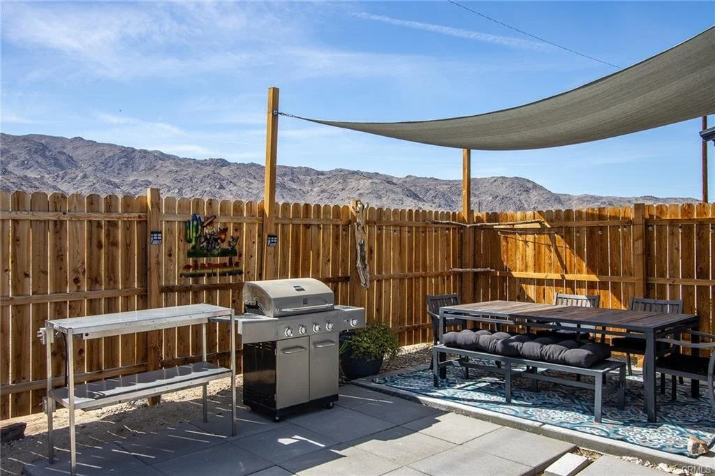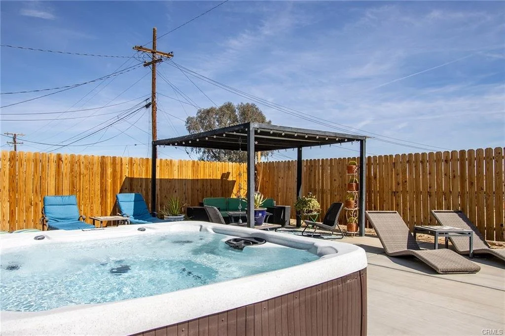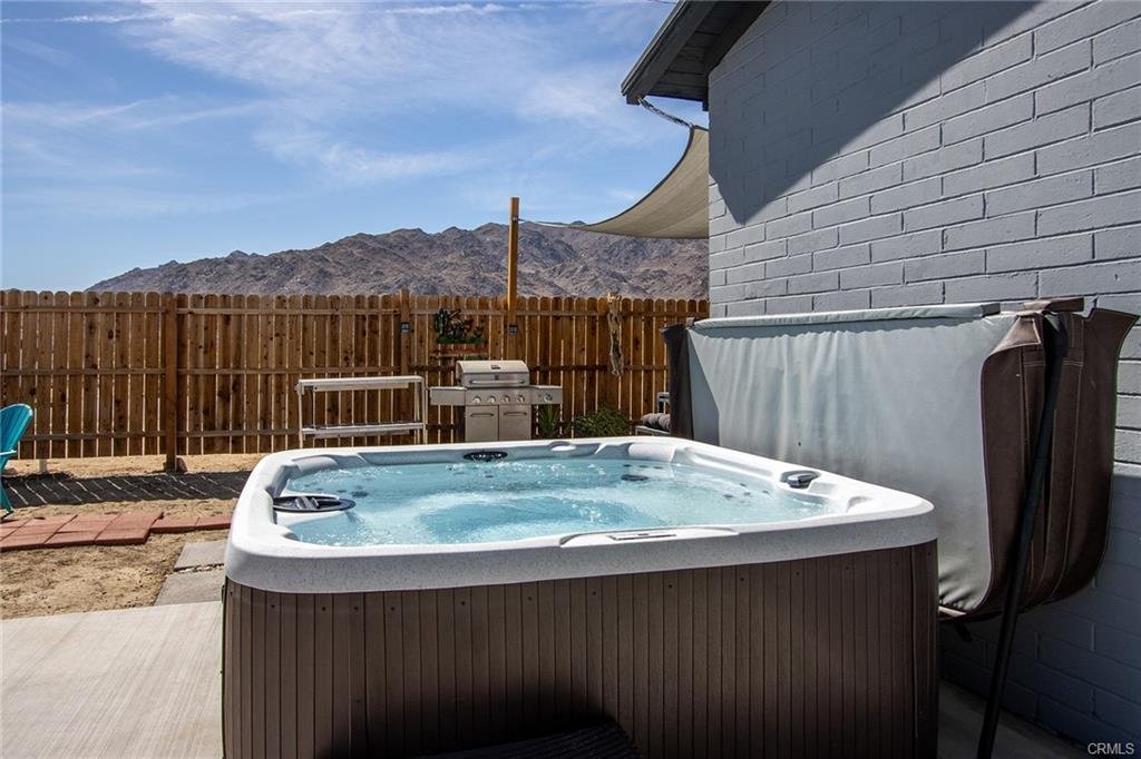 Authentic Mid-Century Modern (1950) block home with vaulted, open-beam ceilings. Panoramic Mountain Views of Joshua Tree National Park. Fully remodeled and upgraded: ALL new interior copper plumbing, water heater. Upgraded electrical panel. New tile floors throughout. Floor-to-ceiling subway tiles in bathrooms. Kitchen also has floor-to-ceiling subway tiles and industrial stainless-steel appliances and shelving. Zoned, ductless mini-split AC/Heating. Fireplace in living room for warmth and ambiance. Indoor/outdoor dining and living spaces. New hot tub. Hike out the front door and across the open desert, or wander through the neighborhood to nearby downtown dining. The $20 million Project Phoenix downtown revitalization project and its new Freedom Plaza has helped make 29 Palms the new go-to area, with better infrastructure and more dining/drinking options than even its more famous neighbor – Joshua Tree – to the west. A new beer brewery recently opened in the revitalization project area, alongside the thriving Farmers Market and Grnd Sqrl – and established gastropub – and more pubs and dining options are underway, creating a burst of energy in the area, similar to the energy in Silverlake and Echo Park when they began to gentrify and revitalize years earlier. 29 Palms is still in the nascent stages of the fantastic city it will become and this is your perfect opportunity to become a part of this exciting new community.