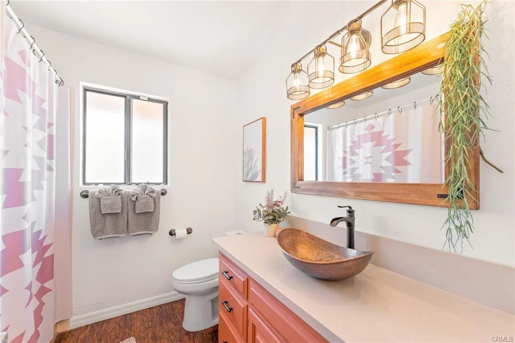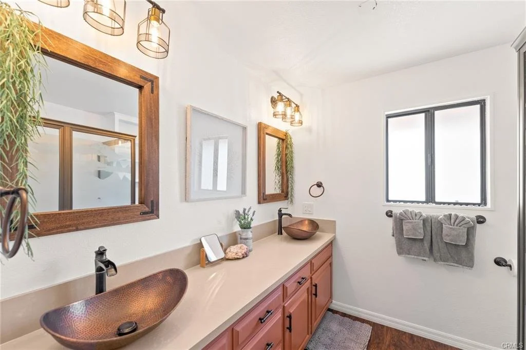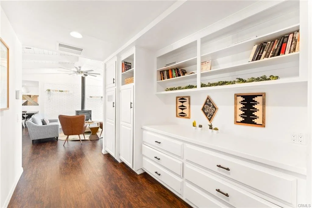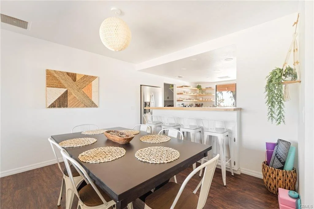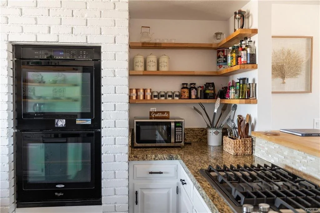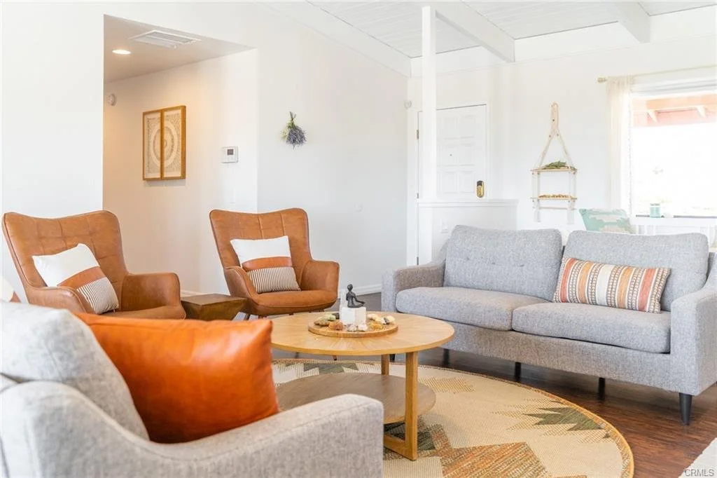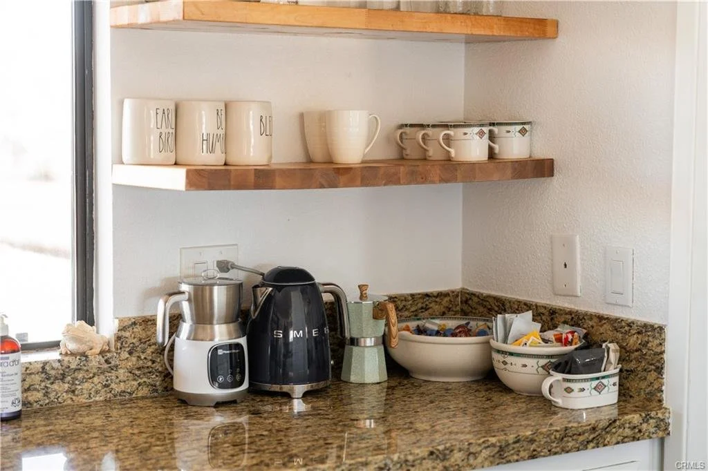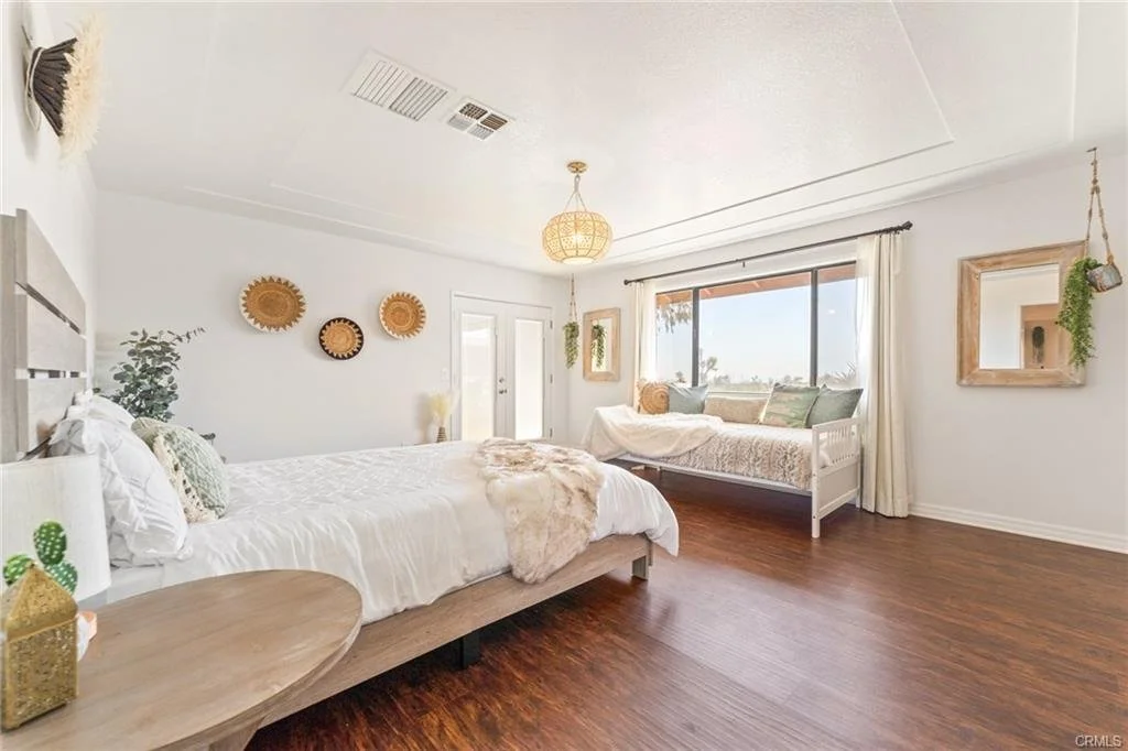 Coveted Western Hills Ranchos home - panoramic views of Joshua Tree National Park and vast wilderness from the backyard. Watch the sunrise from the back porch overlooking a forest of Joshua trees. Location is convenient to town and shopping yet has a rural feel on the eastern edge of town. Large home with nearly 1,900 square feet of living space, including three large bedrooms and three bathrooms. Living room is spacious with brick accents, a wood burning stove, and exposed wood-beamed ceiling. Rare formal dining room with built-in cabinets and a wide hallway with more built-in cabinets, in addition to a 3-car garage approximately 800 square feet; plenty of interior living space for entertaining or work-at-home areas and vast storage space throughout. PAID SOLAR for energy efficiency and reduced power bills. Natural gas meter (so no propane bills). Central AC/Heating. Mature landscaping with irrigation. Underground utilities, so no unsightly power cable running from a pole on the street. Fenced backyard for pets or children. Indoor/outdoor living at its best, with a sublime back porch with hot-tub, special areas for seating, including a dome for stargazing at night. Few homes on the market have so many upgraded interior and exterior living spaces – a must-see perfect forever home. Property TURN-KEY, FULLY-FURNISHED (to be inventoried outside of escrow). Seller purchased all furnishings exclusively for this home.
