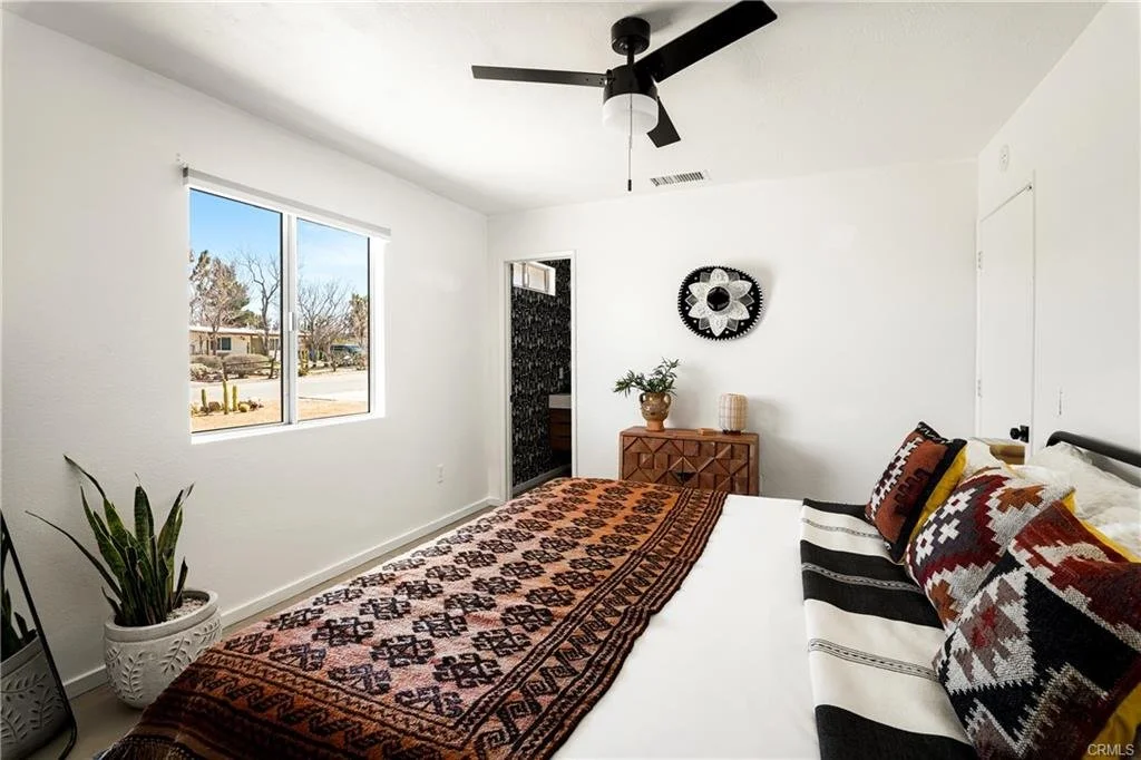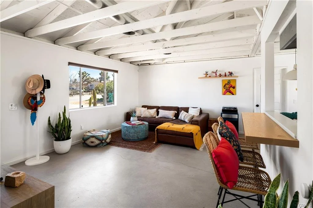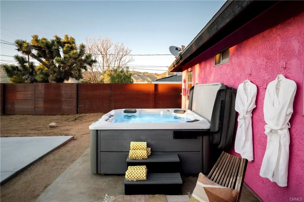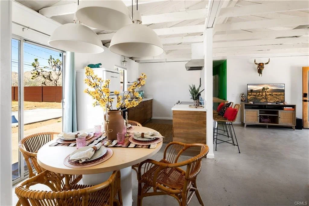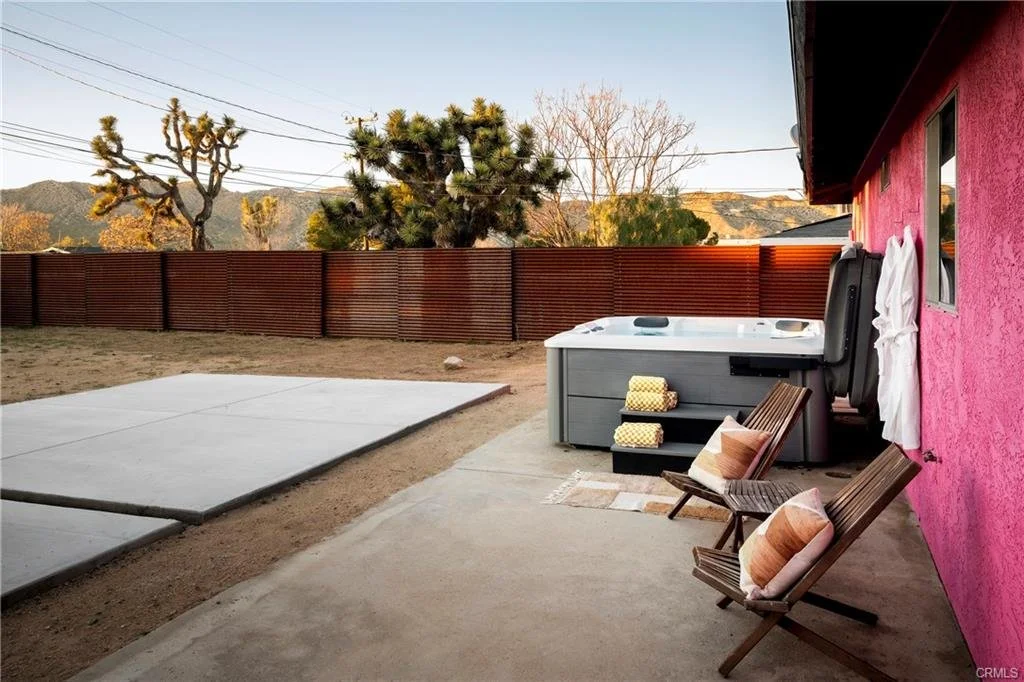 Successful short-term rental opportunity in the heart of Old Town Yucca Valley. Welcome to Casa Chica, a fully furnished 2-bedroom, 2-bathroom home offering proven short-term rental income potential and exceptional character throughout. This turnkey property is being sold fully furnished (with a few seller exclusions), making it ideal as a second home, primary residence, or investment property. Inspired by travels throughout Mexico, the home reflects a modern Mexico City vibe with vibrant colors and design elements that celebrate Mexican culture, heritage, and craftsmanship while maintaining a warm, inviting desert aesthetic. Interior features include polished concrete floors throughout and beautifully remodeled bathrooms. The thoughtful layout provides comfortable bedrooms and functional living spaces designed for both everyday living and guest enjoyment. The fully fenced backyard offers privacy and mountain views in every direction. In addition to the large spa, the outdoor space includes concrete seating and entertaining areas, perfect for gathering and enjoying the desert lifestyle under the stars. The property is connected to city water, natural gas, and public sewer, a valuable convenience in the High Desert. A large attached garage provides additional storage, parking, or potential flex space with a EV Charger. Located in Old Town Yucca Valley, just minutes from local shops, dining, and a short drive to Joshua Tree National Park. A rare opportunity to own a character-filled, income-producing desert retreat with versatility and charm.