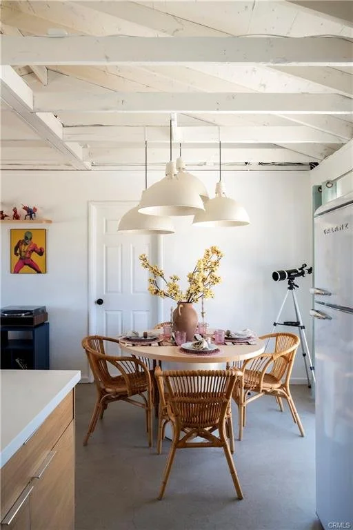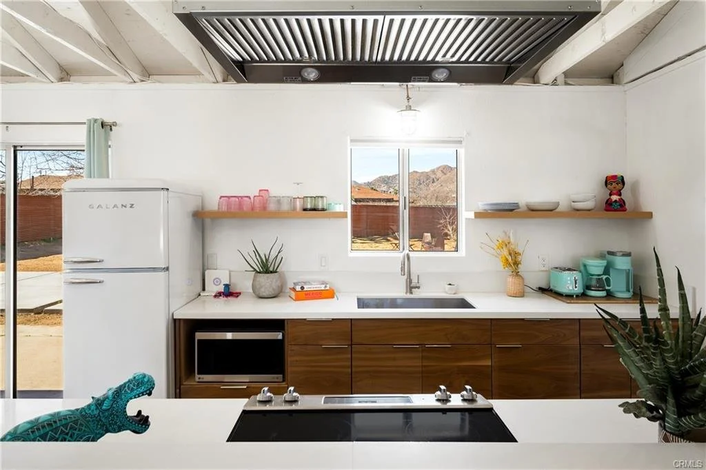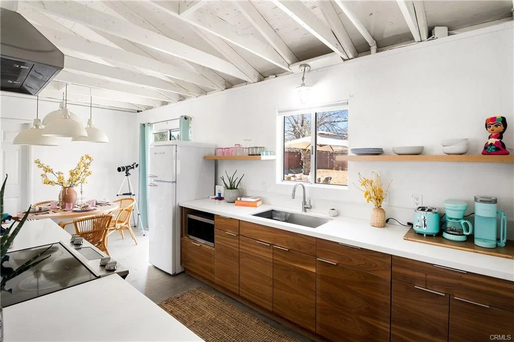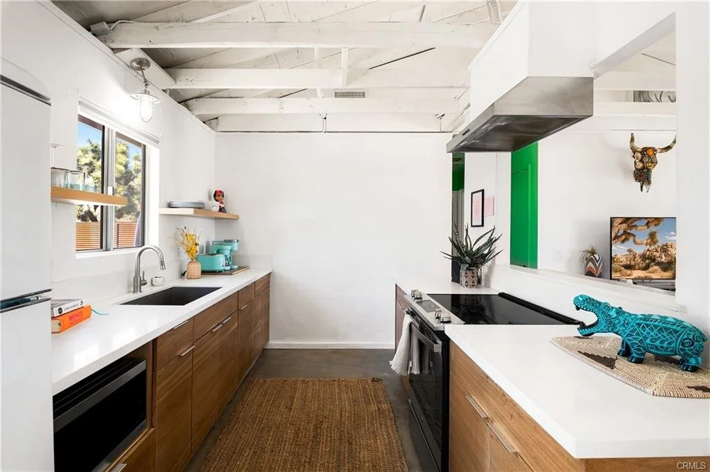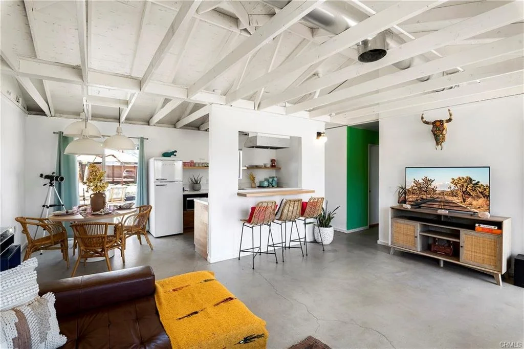 Successful short-term rental opportunity in the heart of Old Town Yucca Valley. Welcome to Casa Chica, a fully furnished 2-bedroom, 2-bathroom home offering proven short-term rental income potential and exceptional character throughout. This turnkey property is being sold fully furnished (with a few seller exclusions), making it ideal as a second home, primary residence, or investment property. Inspired by travels throughout Mexico, the home reflects a modern Mexico City vibe with vibrant colors and design elements that celebrate Mexican culture, heritage, and craftsmanship while maintaining a warm, inviting desert aesthetic. Interior features include polished concrete floors throughout and beautifully remodeled bathrooms. The thoughtful layout provides comfortable bedrooms and functional living spaces designed for both everyday living and guest enjoyment. The fully fenced backyard offers privacy and mountain views in every direction. In addition to the large spa, the outdoor space includes concrete seating and entertaining areas, perfect for gathering and enjoying the desert lifestyle under the stars. The property is connected to city water, natural gas, and public sewer, a valuable convenience in the High Desert. A large attached garage provides additional storage, parking, or potential flex space with a EV Charger. Located in Old Town Yucca Valley, just minutes from local shops, dining, and a short drive to Joshua Tree National Park. A rare opportunity to own a character-filled, income-producing desert retreat with versatility and charm.
