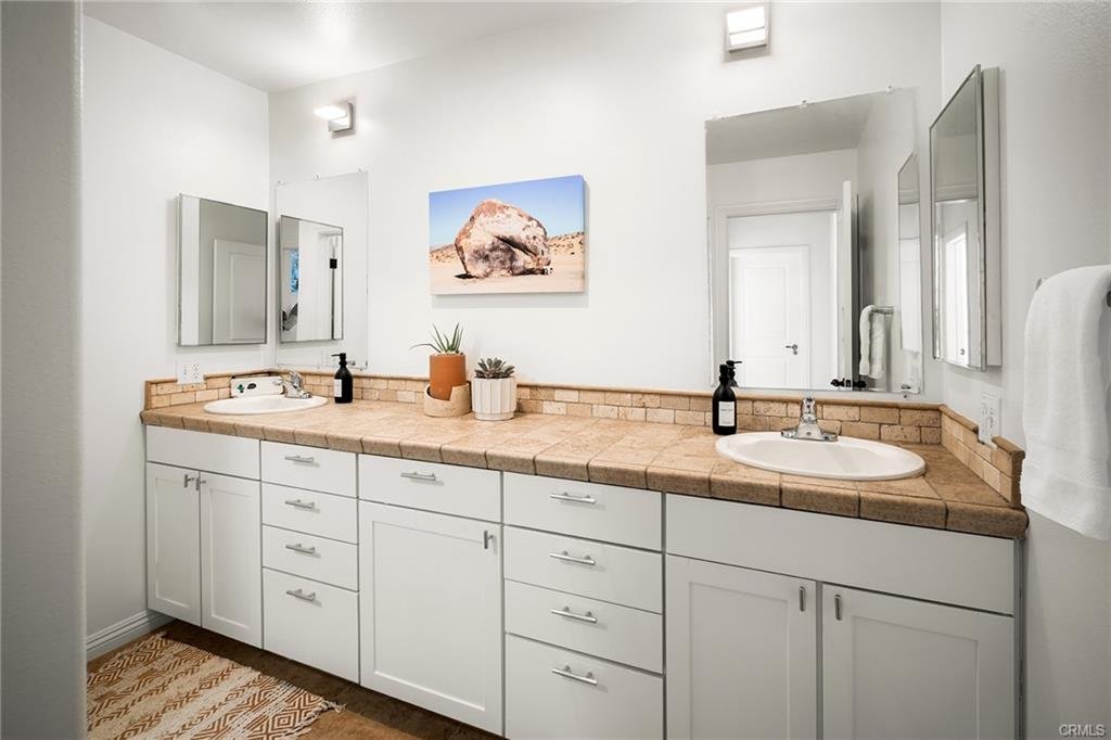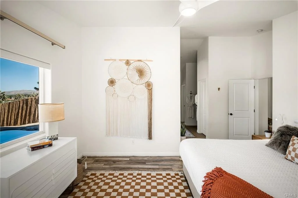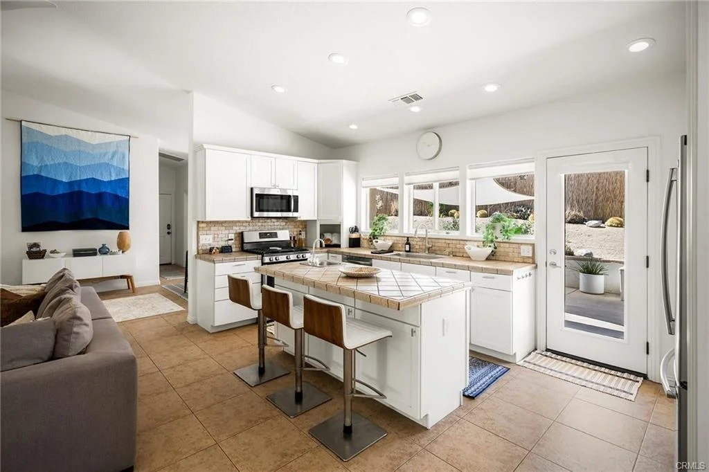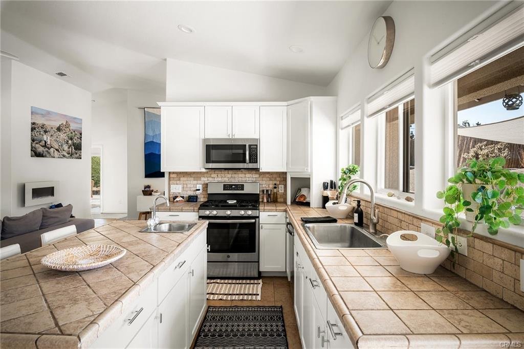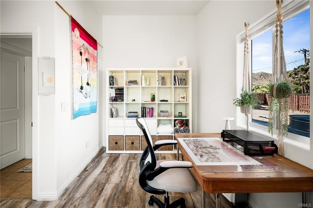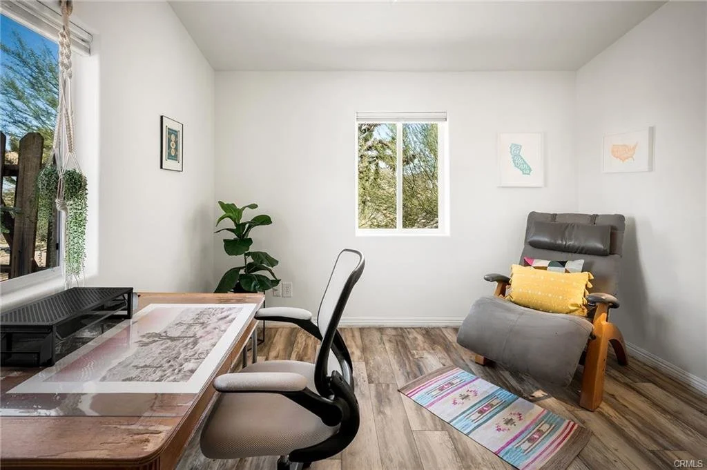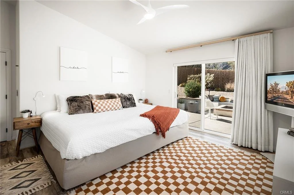 Set against sweeping mountain views in one of the area’s greenest and most established neighborhoods, this beautifully maintained 3-bedroom, 2-bath home with bonus room sits on a prime half-acre corner lot in desirable Country Club Estates. A mature, tree-lined front yard with lush desert landscaping creates exceptional curb appeal and a welcoming arrival. No HOA. Newly paved streets, connected to public sewer and natural gas, school bus stop, and a short walk to the area’s only golf course and popular café, The Roost. Conveniently and centrally located just a short drive to Joshua Tree, Pioneertown, and Palm Springs. The open-concept layout features high ceilings and abundant natural light, with mountain views visible from most rooms. Modern fixtures, ceiling fans throughout, custom blinds and curtains, and stylish flooring create a comfortable and inviting interior. The large primary suite offers a spacious bathroom with dual vanities, extra large soaking tub, walk-in shower, and a generous walk-in closet. TVs are included in all bedrooms. The fully fenced backyard is designed for entertaining and relaxation, featuring a custom patio with built-in gas fireplace and seating, raised lookout deck with outdoor queen bed, 4-person hot tub, oversized cowboy tub, shaded dining area, BBQ, and beautifully landscaped desert grounds. Additional features include a fully equipped kitchen with modern appliances, electric fireplace, laundry room with newer washer/dryer, attached two-car garage, and rare concrete roof. Offered partially furnished; buyers to request exclusions list. Property is move-in ready and perfectly suited as a full-time residence or an effortless desert getaway.