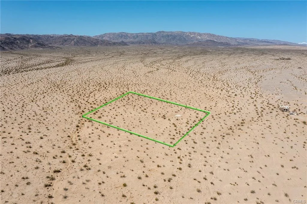 RARE 2.5-Acre parcel with frontage to JOSHUA TREE NATIONAL PARK. Step from this private property directly into the National Park – very few properties share the border of the Park. As a matter fact, this parcel also borders government-owned BLM land to the East, to the North, to the West and to the South it borders the National Park. ALL SIDES OF THIS PROPERTY BORDER GOVERNMENT LAND. Only the Northwest corner of the property touches private property. No water. No electricity. There is a pad from a former homestead cabin. NOTE: Green lines demarcating boundaries are approximate, property has not been surveyed; street address is not official – do not use address or google maps GPS to locate property. To find property, please locate with APN: 0592-501-32