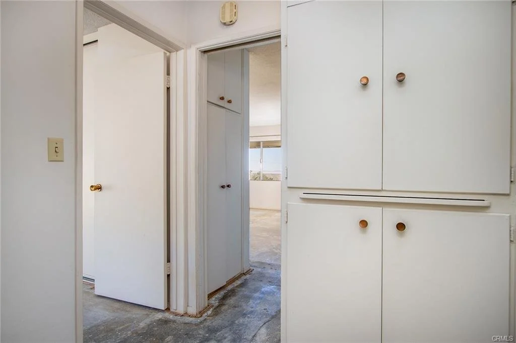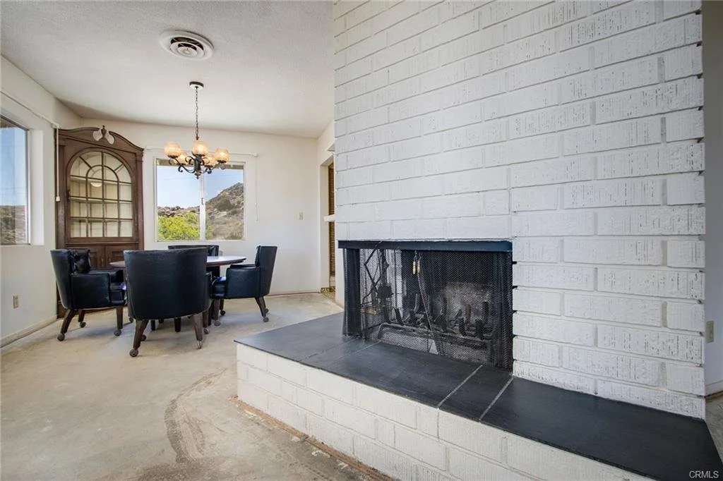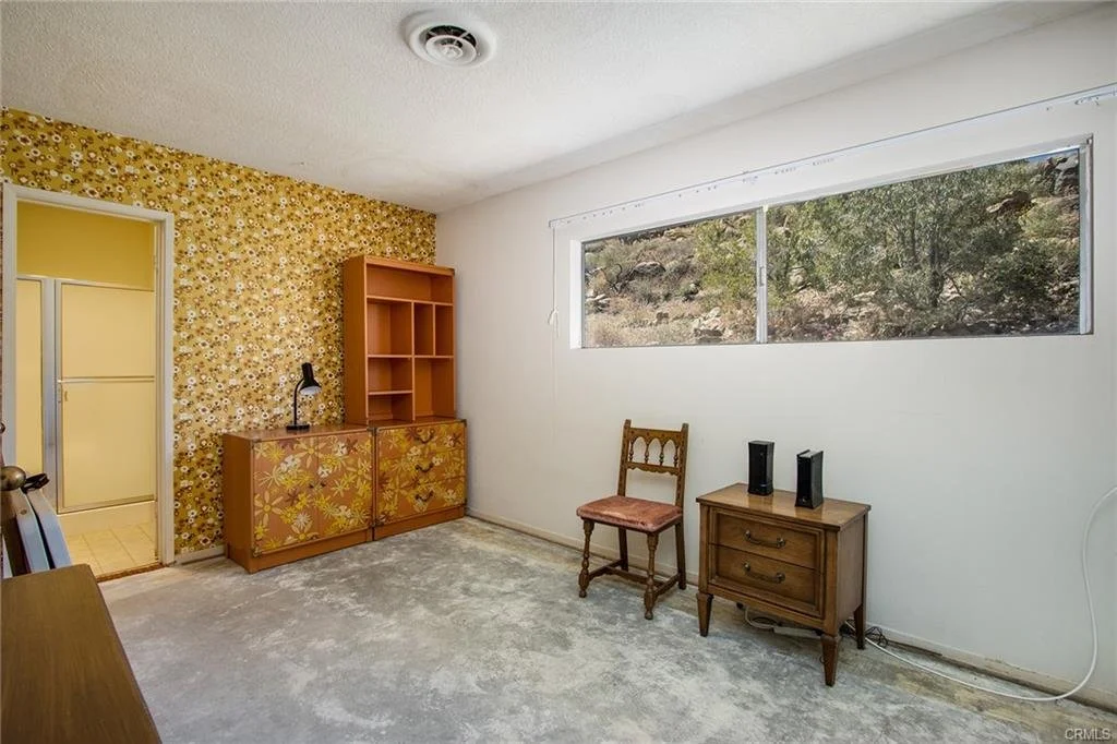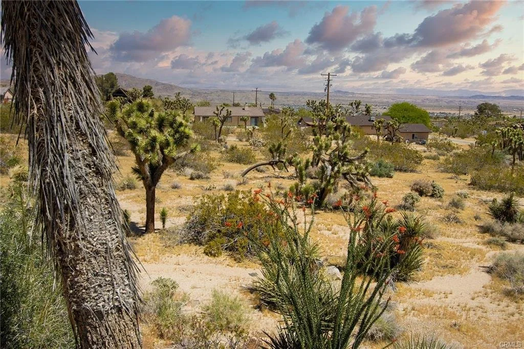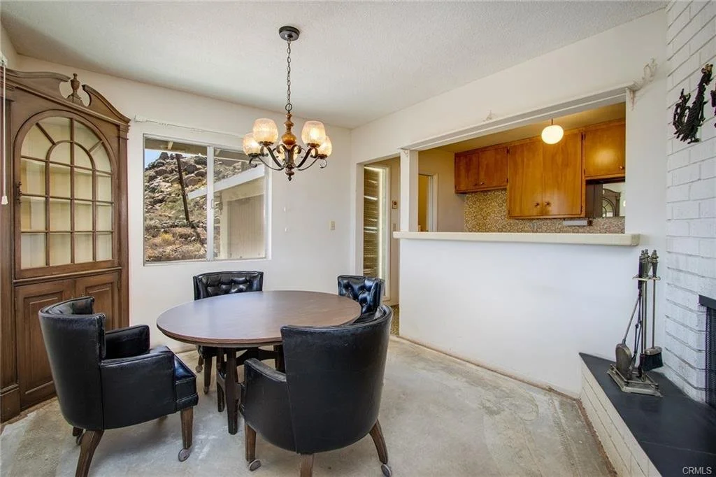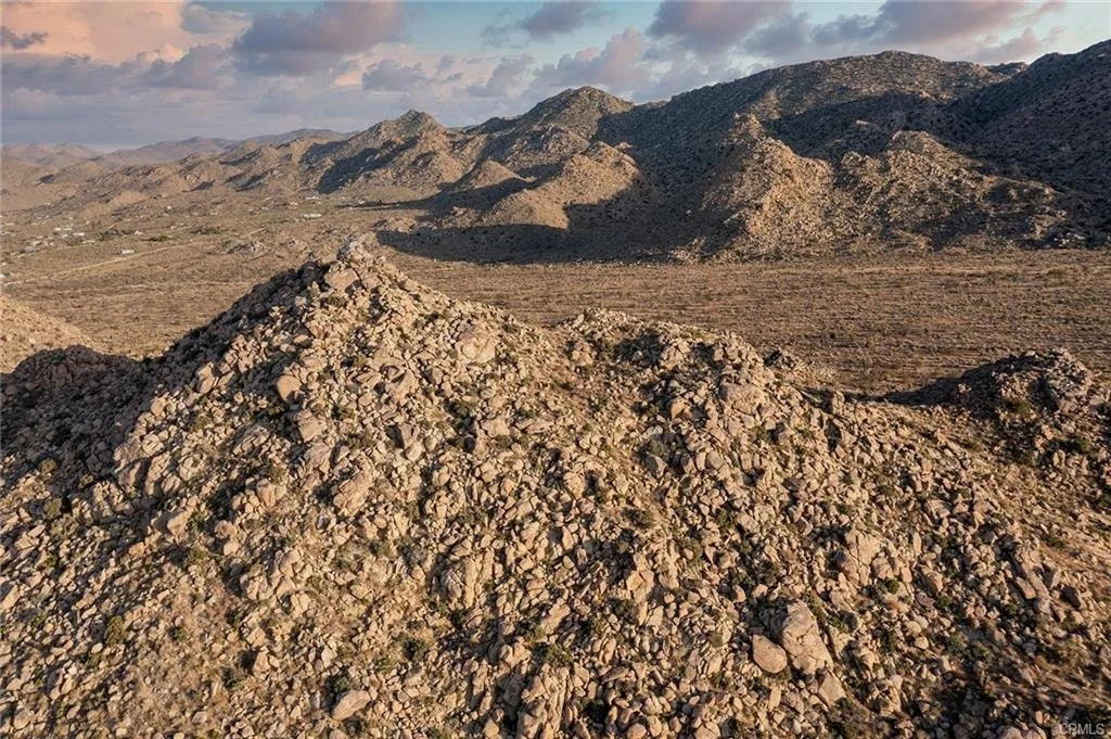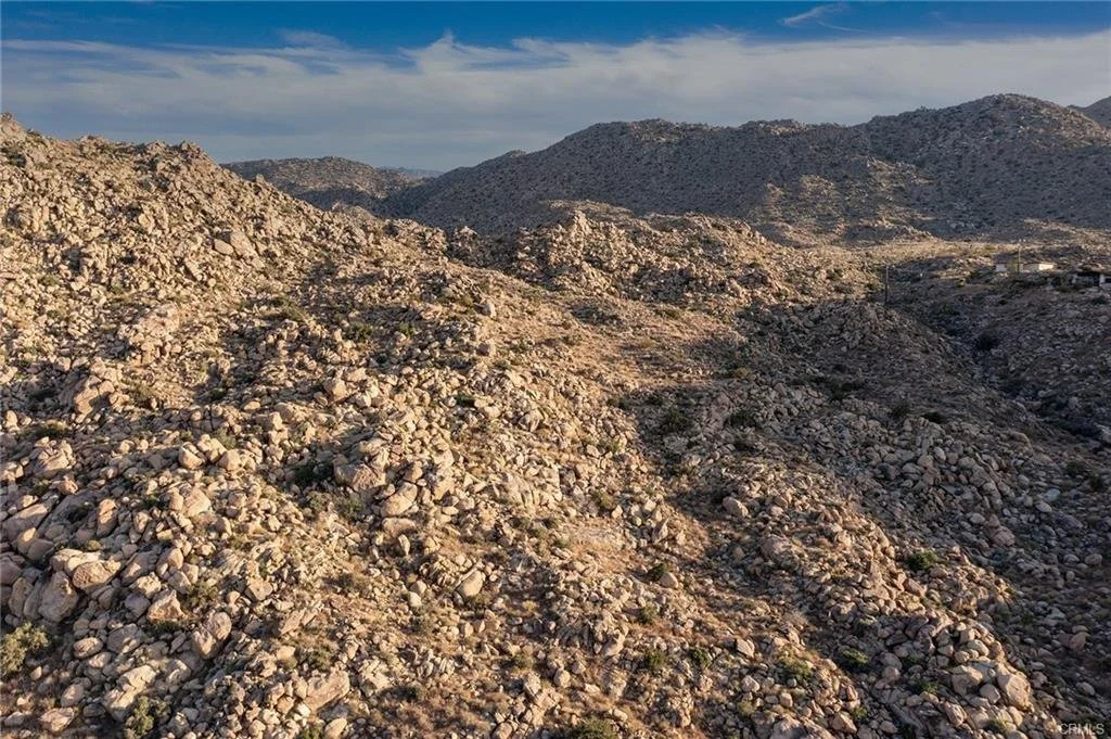 BOULDERS & JOSHUA TREES: Majestic private setting on rocky hillside with paved road access minutes to downtown. Walk out the backdoor, up your own boulder hillside and into a nature preserve connected to Joshua Tree National Park. Avoid the crowds – leave your car in the garage – while hiking from home! Over 20-acres, already split in two separate parcels: 15+ acres on which the house resides & 4.5-acre vacant parcel to develop or keep as a privacy buffer. One can build a primary home and guesthouse on each parcel – therefore you can still add a guesthouse to the 15-acre parcel and an additional home and guesthouse to the second parcel, allowing for 3 additional dwellings – or keep as your own nature preserve. Elegant, understated midcentury interior, featuring block fireplace partitioning dining and living room. Quality concrete flooring ready to be polished to luster. Surrounding shade porches for authentic indoor/outdoor living to experience rural serenity while sipping your morning coffee or an evening beverage at sunset. Home needs complete remodel/updating to be sold in As-Is Condition. No bumpy dirt roads to reach your front door – smooth sailing on paved roads – convenient to public amenities (dining, entertainment, shopping and hospital – all only minutes away) yet so private and remote.